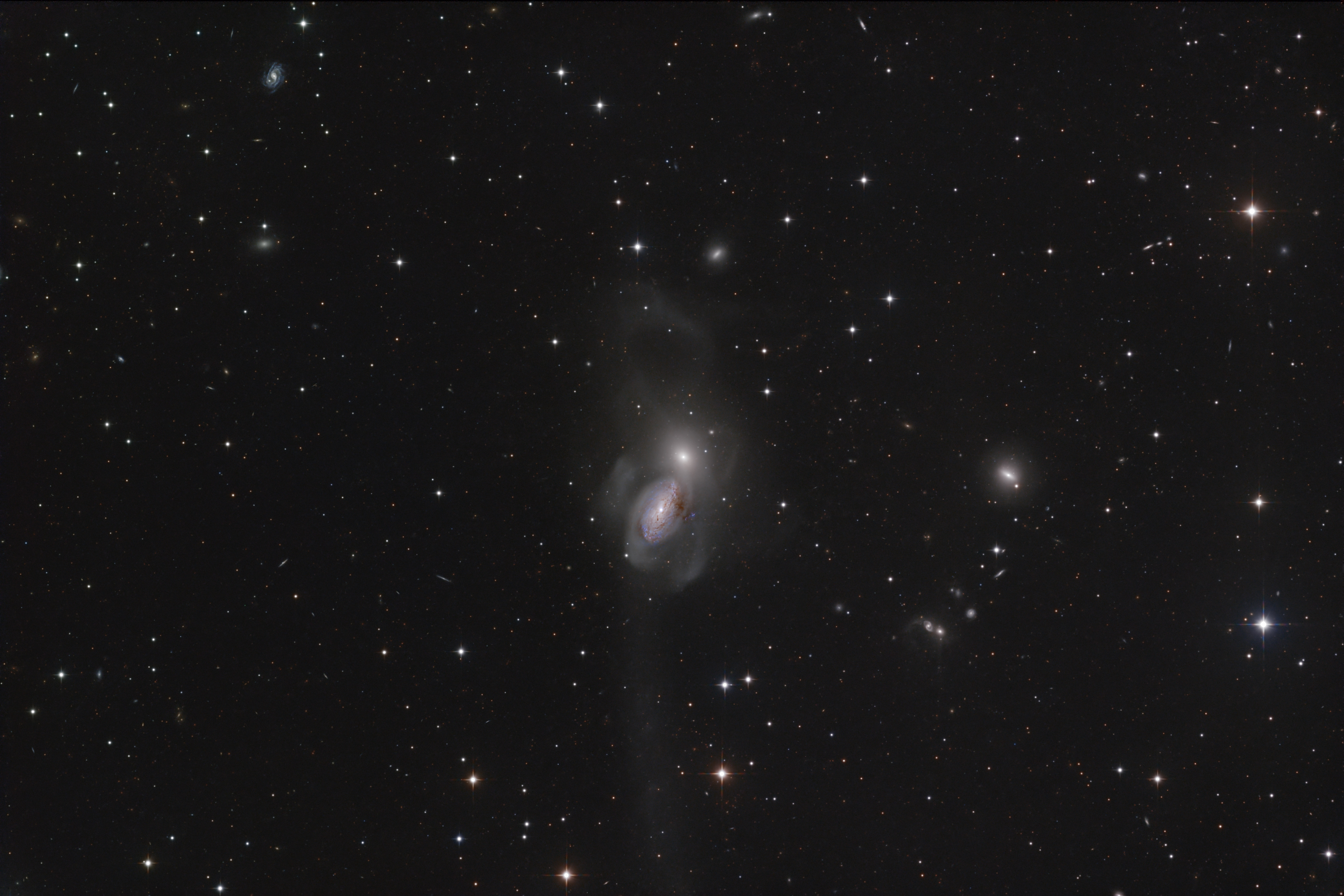 Das Bild ist ein LRGB mit 15,13 Stunden, wobei die Luminanz mit 10min für die Gezeitenschweife und mit 3min für die Galaxiezentren belichtet wurde.