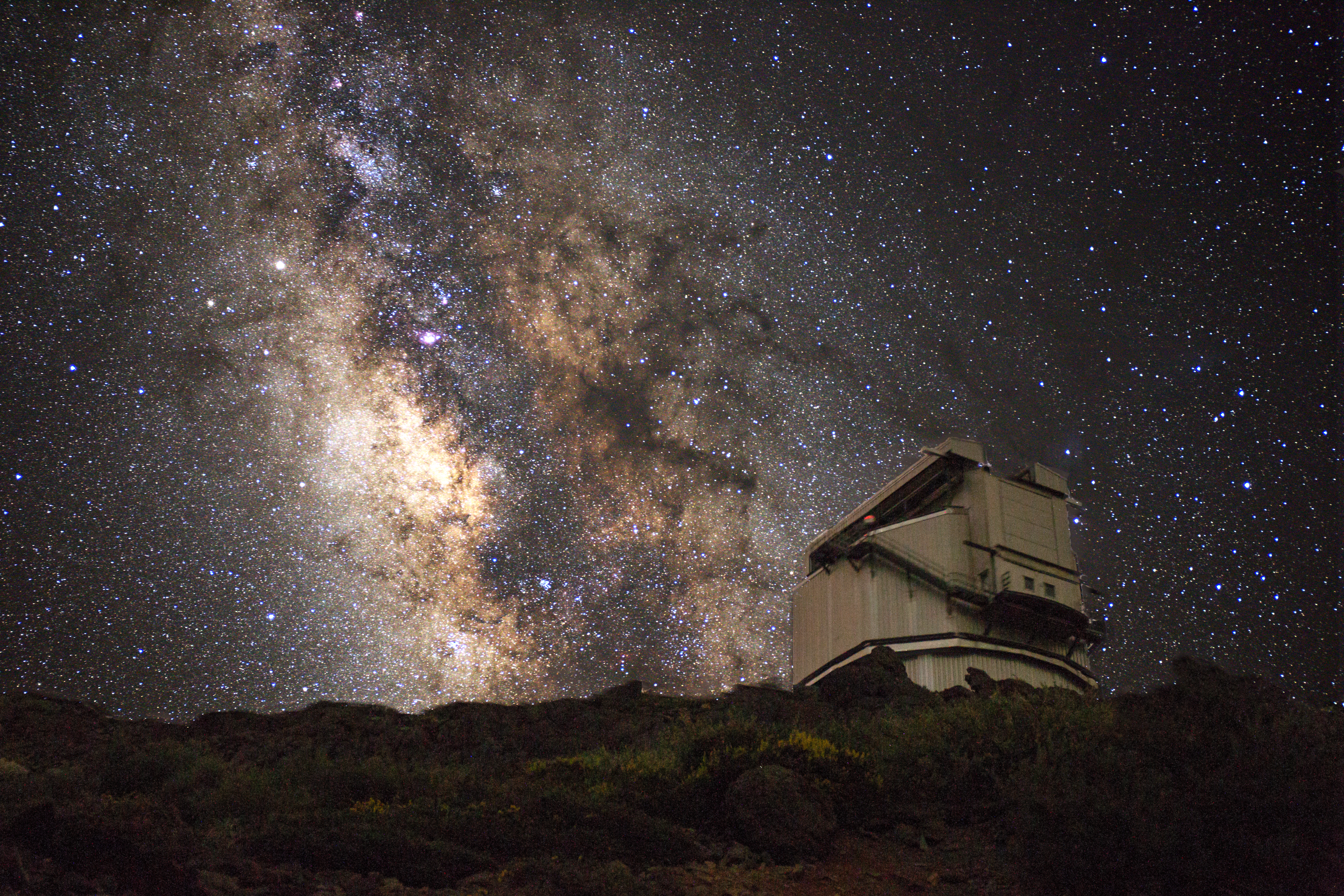 Leserbilder Astronomie: Galileo National Teleskop (GNT) auf der Insel La Palma mit Milchstraße