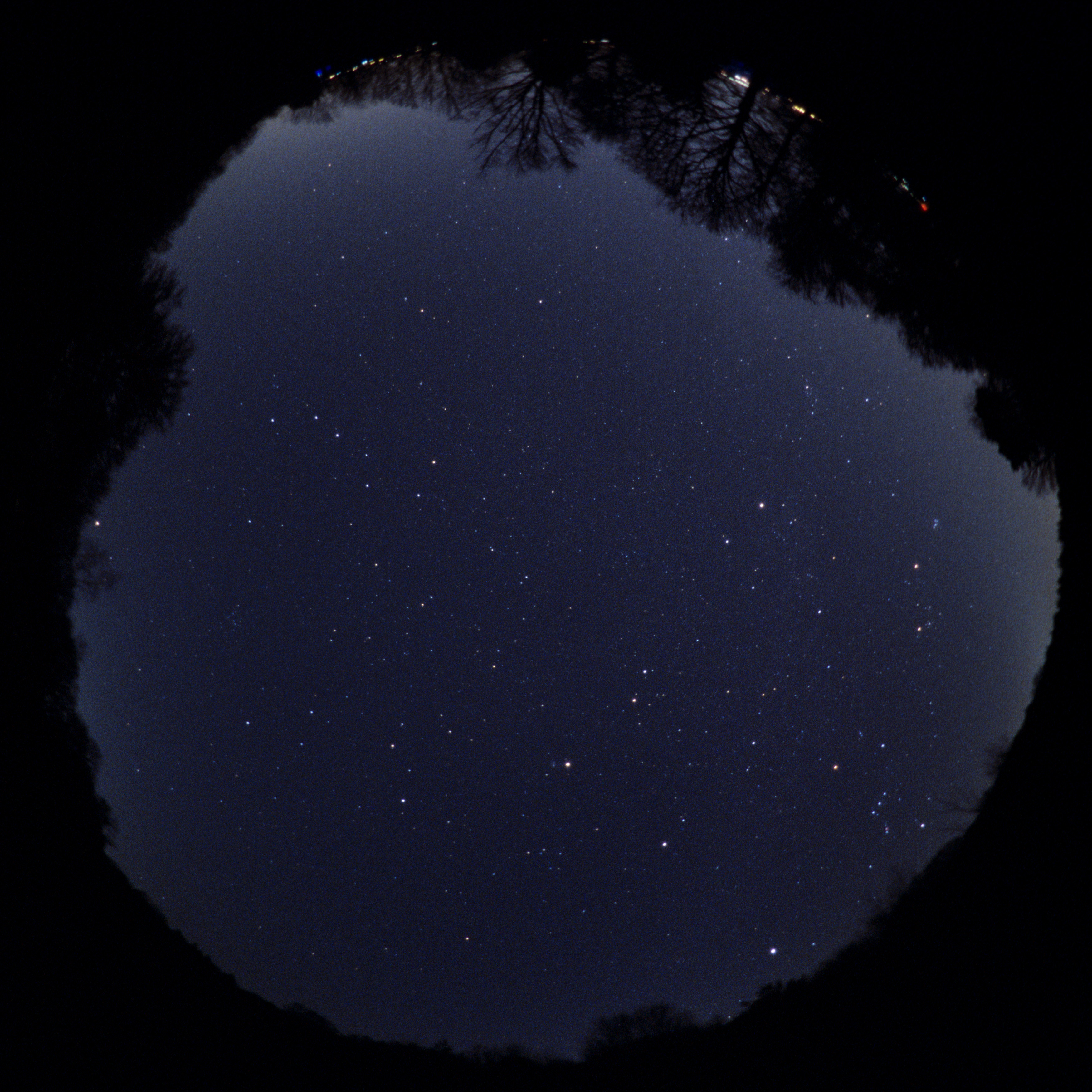 Die Fisheye-Aufnahme zeigt den gesamten Himmel des Frühjahrs. Im März des Jahres 2006 stand Saturn im Löwen und Mars im Stier.