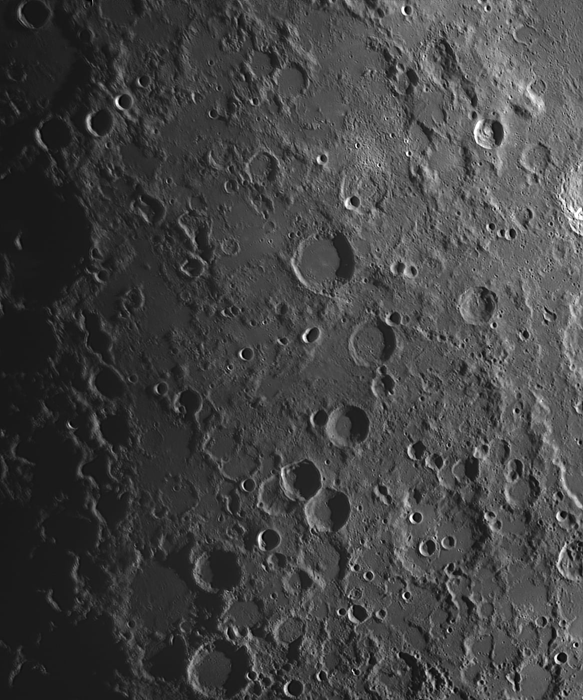 Mit der Kraterkette, die von seinem südlichen Rand in Richtung Osten zieht, ist der Krater Abulfeda ein markanter Blickfang. Das Innere des Kraters wirkt glatt während sein nordöstlicher Nachbar Descartes nor noch durch die Reste des Kraterwalles zu erkennen ist. Auch das Gebiet nördlich von Descartes zeigt eine Struktur, die an eine Orangenhaut erinnert. Ein Zeichen von Alter?