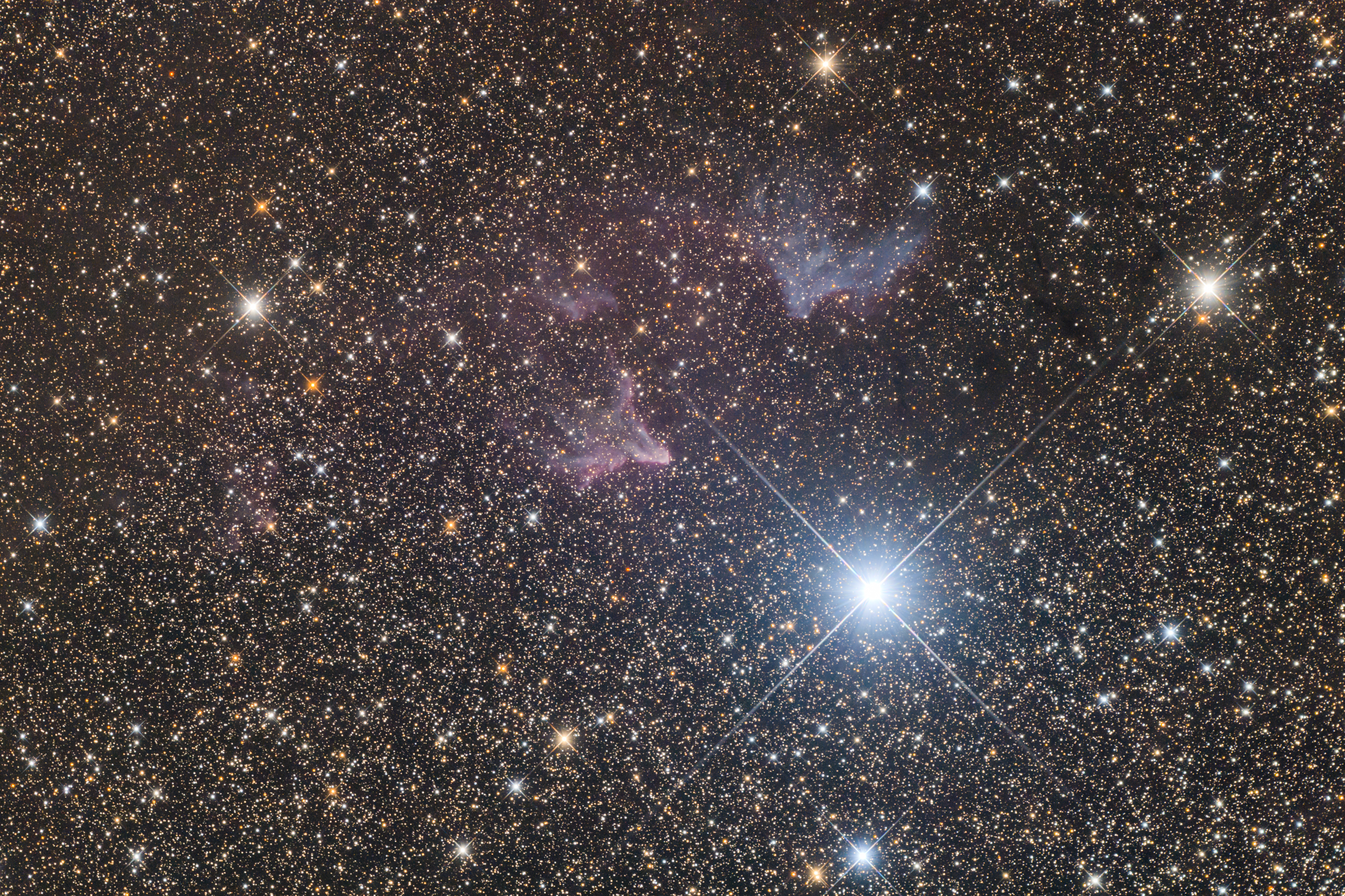 Diese faszinierende Himmelsregion befindet sich im Sternbild Kassiopeia. Der helle Stern ist Gamma Cassiopeiae in einer Entfernung von rund 549 Lichtjahren. Die Nebel sind sowohl Reflexions- als auch Emissionsnebel mit der Katalognummer IC 59 und IC 63 in einer Entfernung von drei bis vier Lichtjahren zum Stern. Dieser wird auch »,Geist von Kassiopeia« genannt. Quelle: Wikipedia