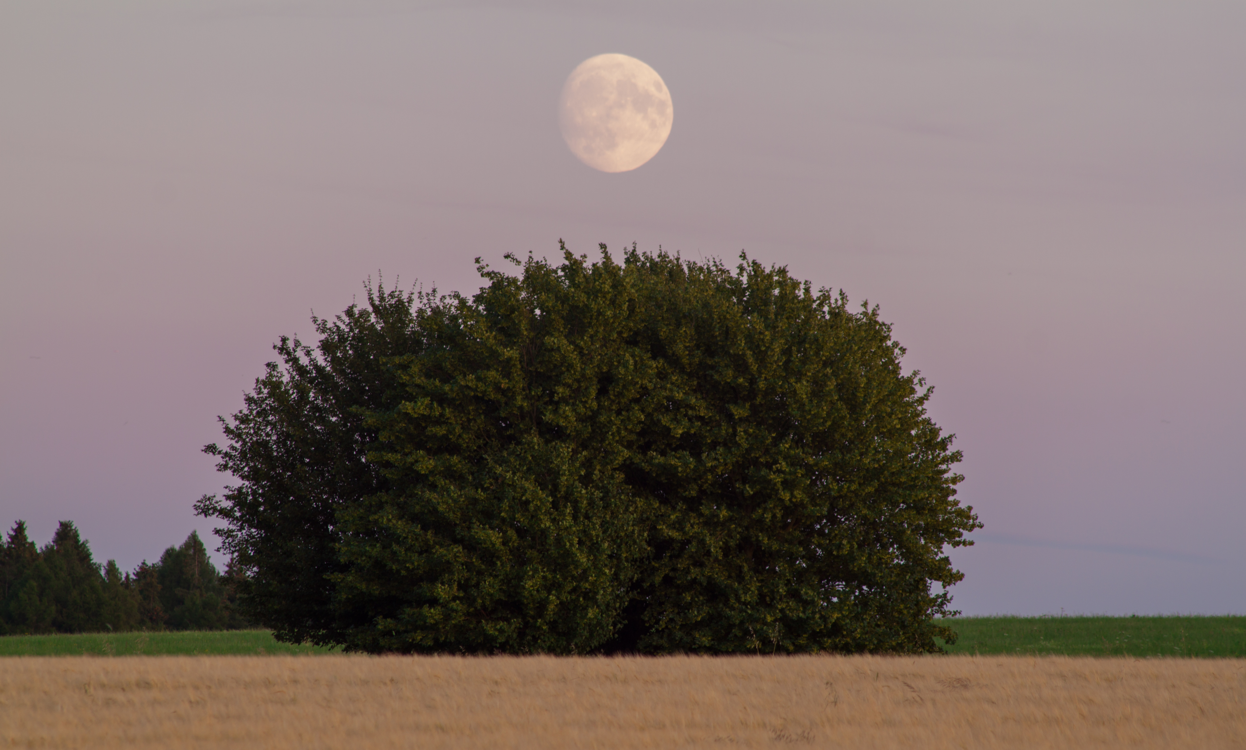 »Fast-Vollmond« über einem Waldstück im Erzgebirge. Die Stimmung war an diesem Abend sehr schön, leider war die Sicht nicht 100 Prozent klar, aber das Ergebnis war dennoch ganz schön.