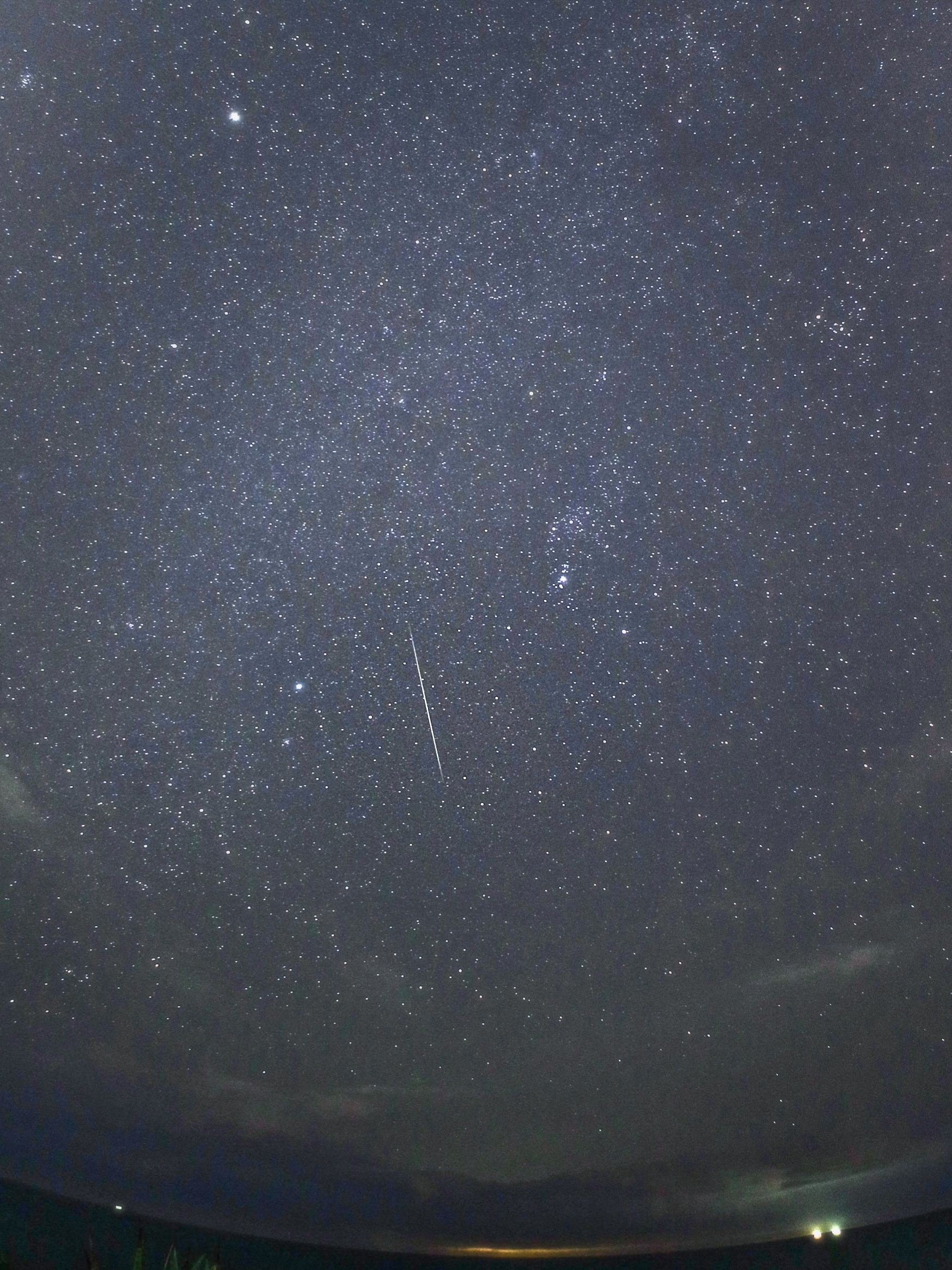 This night I managed to capture a large Geminid meteor in the middle of the constellation Orion; Sicily, Italy, Marina di Modica