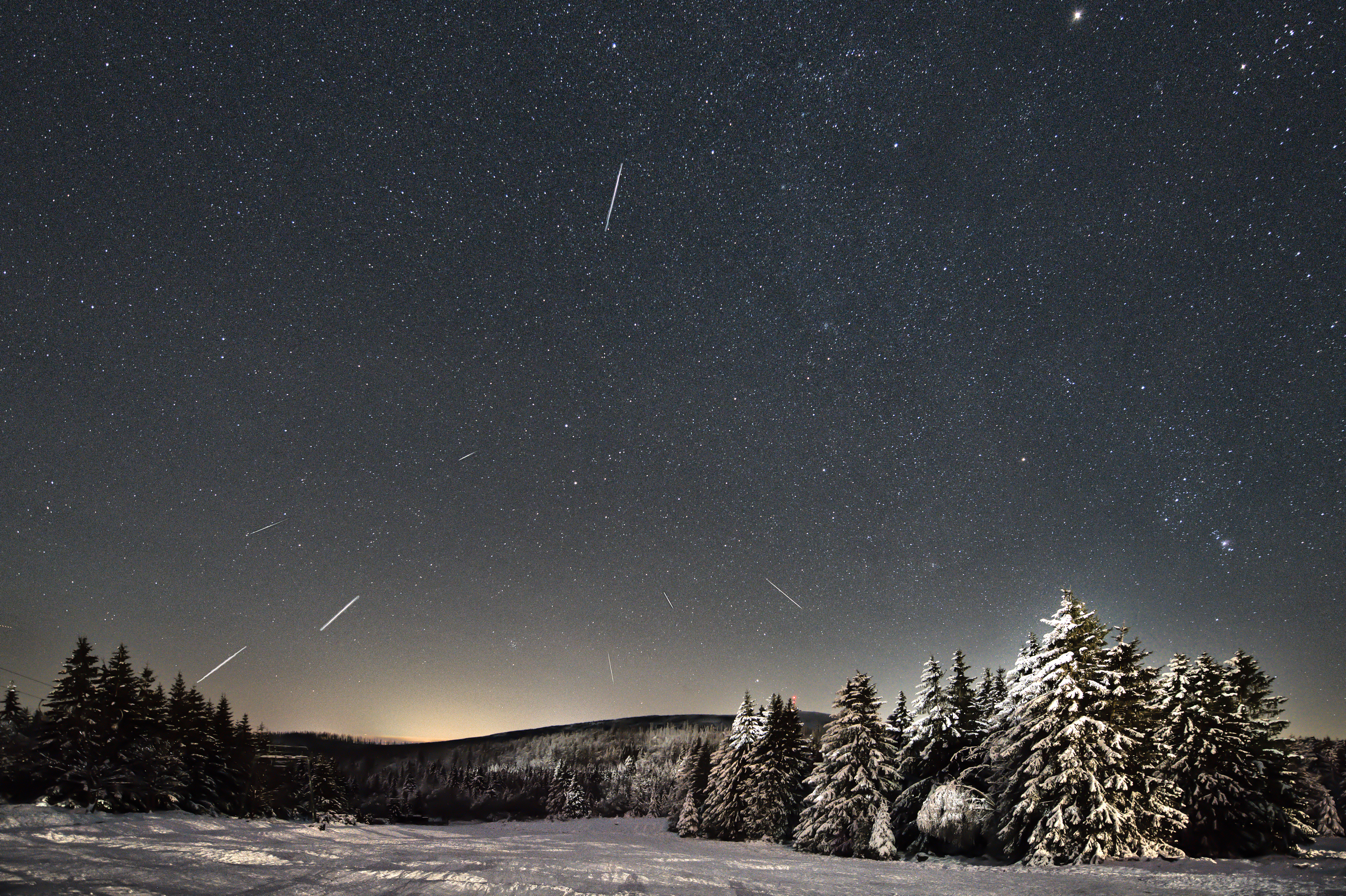 Trotz eisiger Kälte haben wir bei -10°C die Geminiden 2022 vom Torfhaus aus fotografiert.