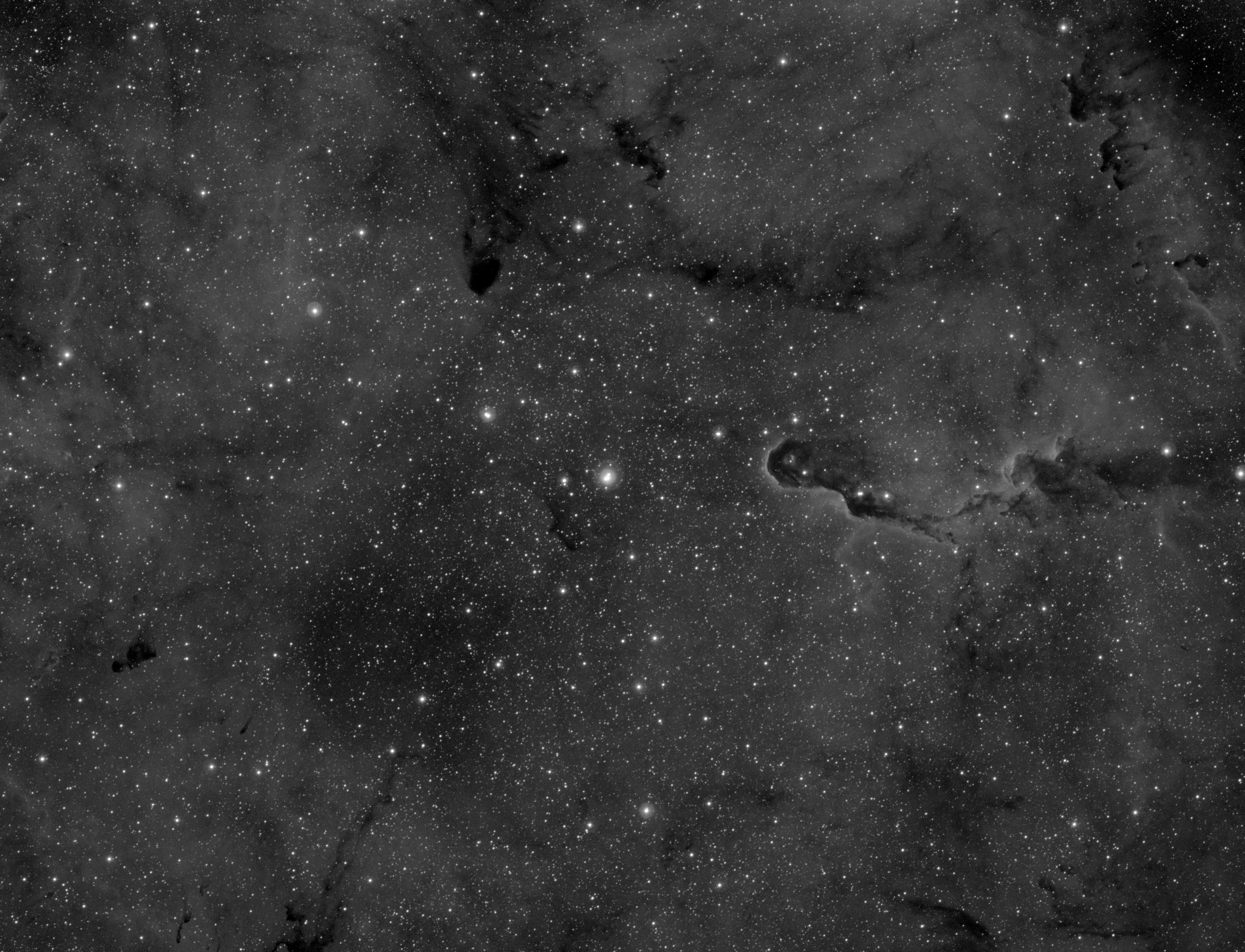 Durch die Verwendung schmalbandiger H-alpha-Filter wirkt der Kontrast der Globulen zur großen HII-Region sehr stark. Die Globulen schweben so sehr schön im Raum wie ich finde.