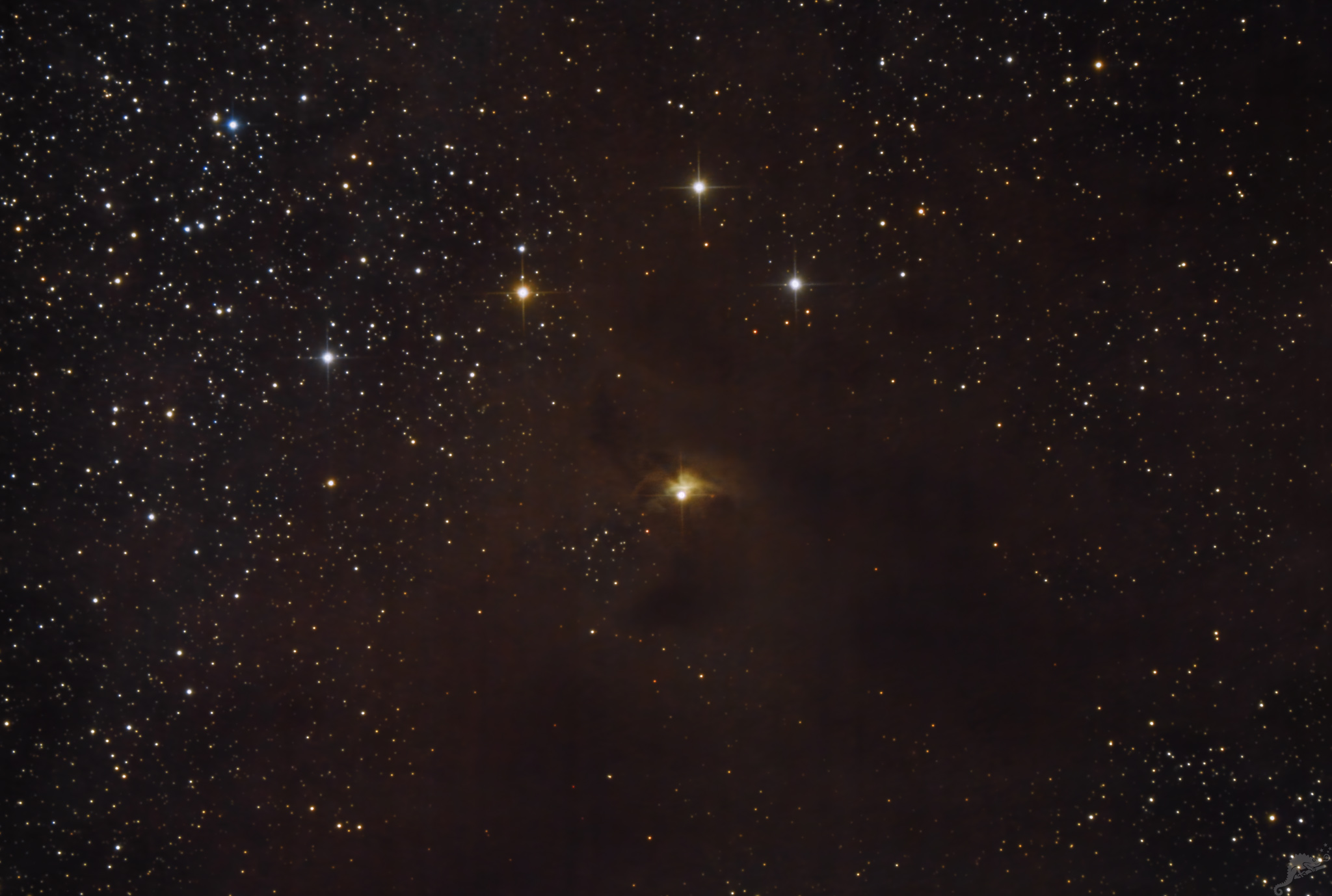 Dieser kleine Reflexionsnebel befindet sich inmitten der Dunkelwolke B 228 im Sternbild Wolf. Ein einzelner gelber Stern beleuchtet seine benachbarten, dichten Molekülwolken.