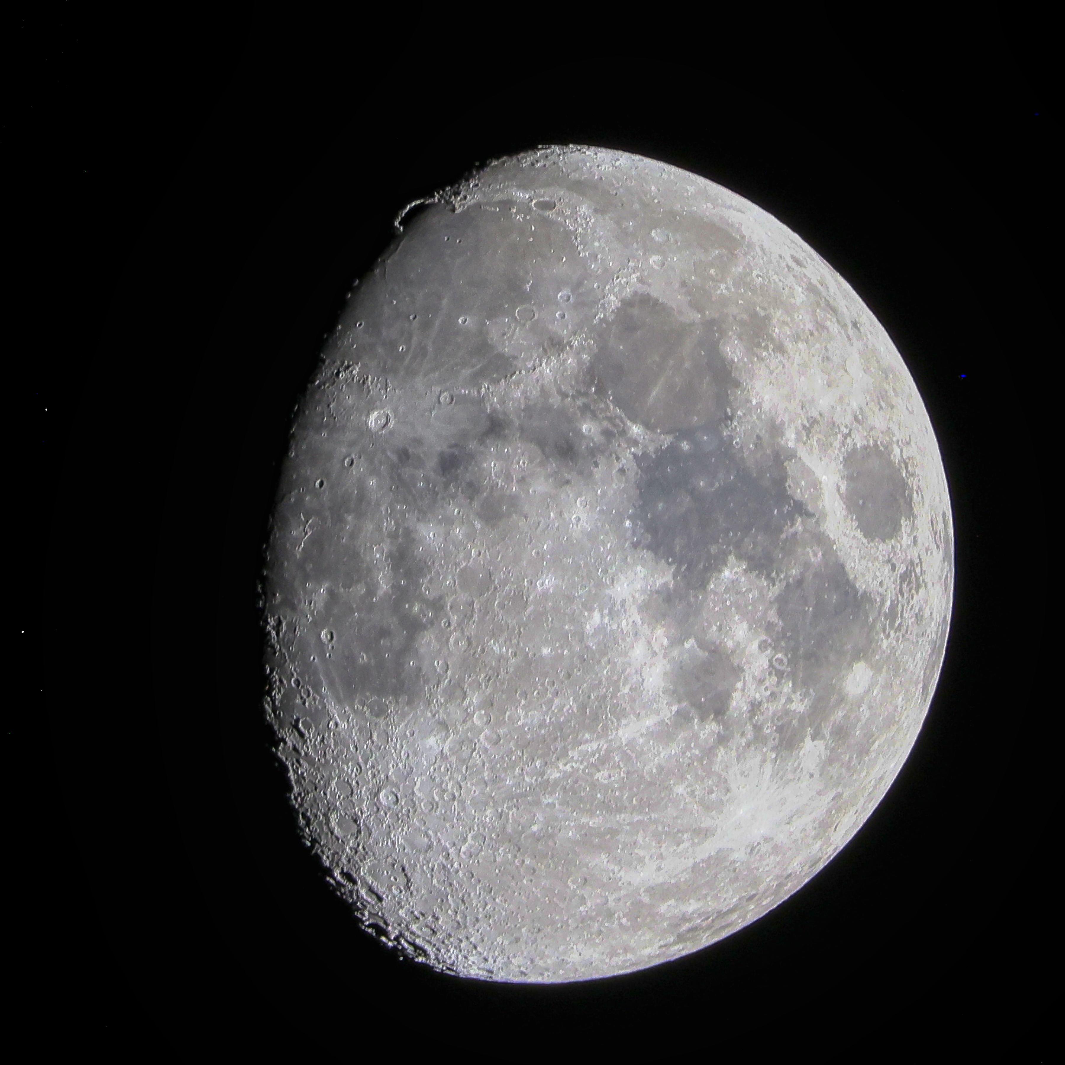 Am 9. März 2025 bot sich die Gelegenheit, den Goldenen Henkel unseres Erdmonds aufzunehmen. Trotz des in der Atmosphäre vorhandenen Sahara-Staubs war er um 22:37 Uhr recht klar sichtbar. Nach Gewöhnung an die Dunkelheit war er selbst mit bloßem Auge zu erahnen. Auf meinem Foto ist er etwa bei 11 Uhr zu sehen. Der Mond hatte zum Zeitpunkt der Aufnahme eine Entfernung von rund 388000 Kilometern zur Erde. Der Goldene Henkel ist ein visuelles Phänomen auf der Mondoberfläche, das etwa zehn Tage nach Neumond auftritt, wenn der Mond zu 83 Prozent beleuchtet ist. Es handelt sich um einen Lichteffekt, der an der Tag-Nacht-Grenze (Terminator) des zunehmenden Mondes sichtbar wird. Der Effekt entsteht, wenn das Sonnenlicht die Gipfel der Montes Jura (Juragebirge) beleuchtet, während das angrenzende Tal des Sinus Iridum (Regenbogenbucht) noch im Schatten liegt. Die beleuchteten Bergspitzen bilden einen hellen, bogenförmigen Henkel, der in die dunkle Seite des Mondes hineinragt. Dieser Lichtbogen erstreckt sich über etwa 420 Kilometer und umrahmt den Krater Sinus Iridum, der einen Durchmesser von etwa 260 Kilometern hat. Die Berge des Juragebirges sind bis zu 3000 Meter hoch.