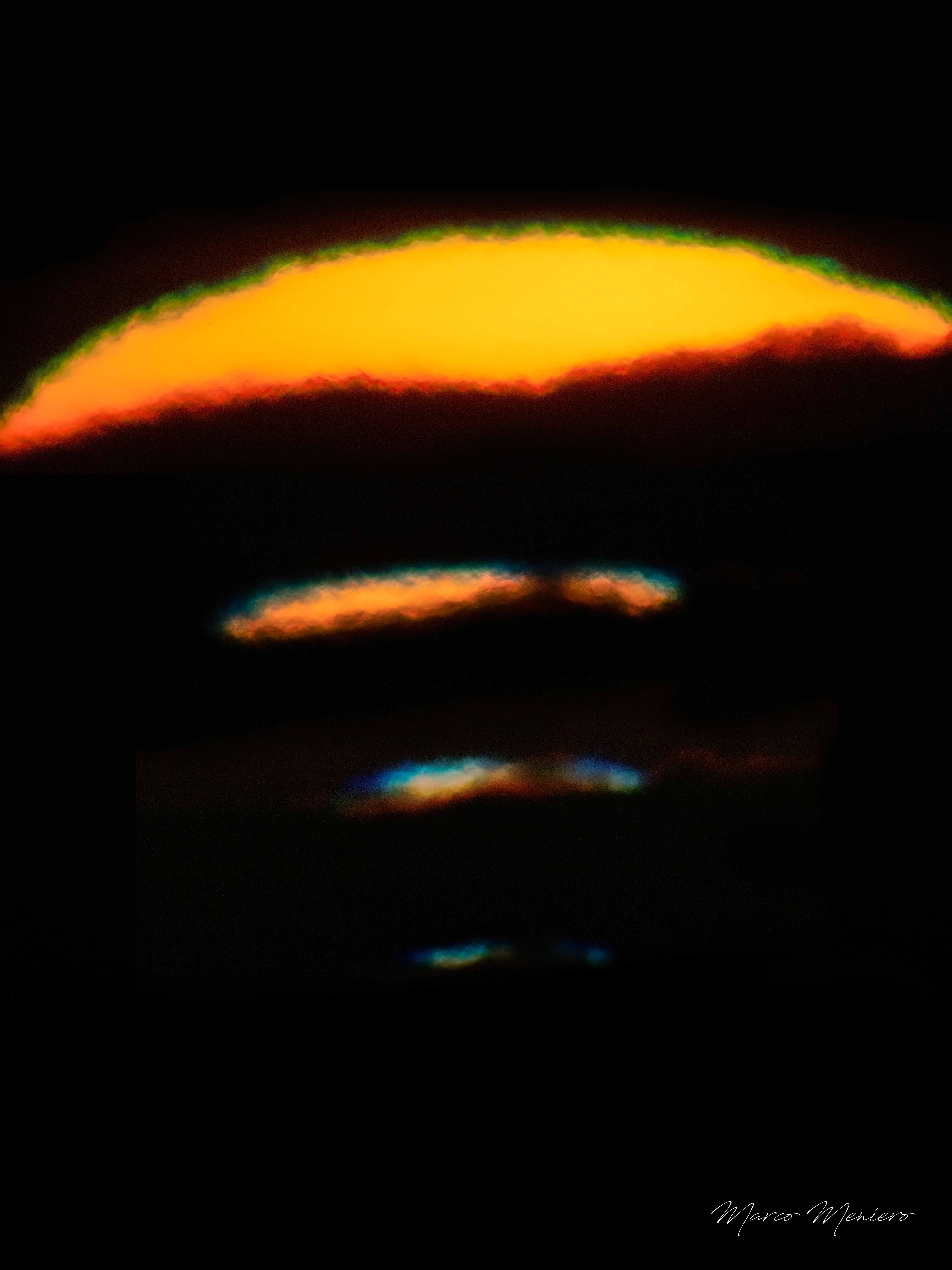 I used a Nikon Z9 set at ISO 400 and Nikon 300/2.8G VR lens. The 300 mm focal length is too short to have a good magnification factor for shooting the phenomenon and therefore I applied Lolli Adriano's AMPLI optical extender tool so as to be able to extend the 13.5X focal length, I also set the shooting sensor in DX format (1.5X), so I got an equivalent focal length of 6.075 (300 x 1.5X x 13.5X) f/56.4. Shooting times are from top to bottom: 1/6400, 1/4000, 1/3200, 1/3200. With Photoshop I limited myself to editing the sequence, retouching the exposure of all shots by +1stop and modifying clarity, highlights and shadows.