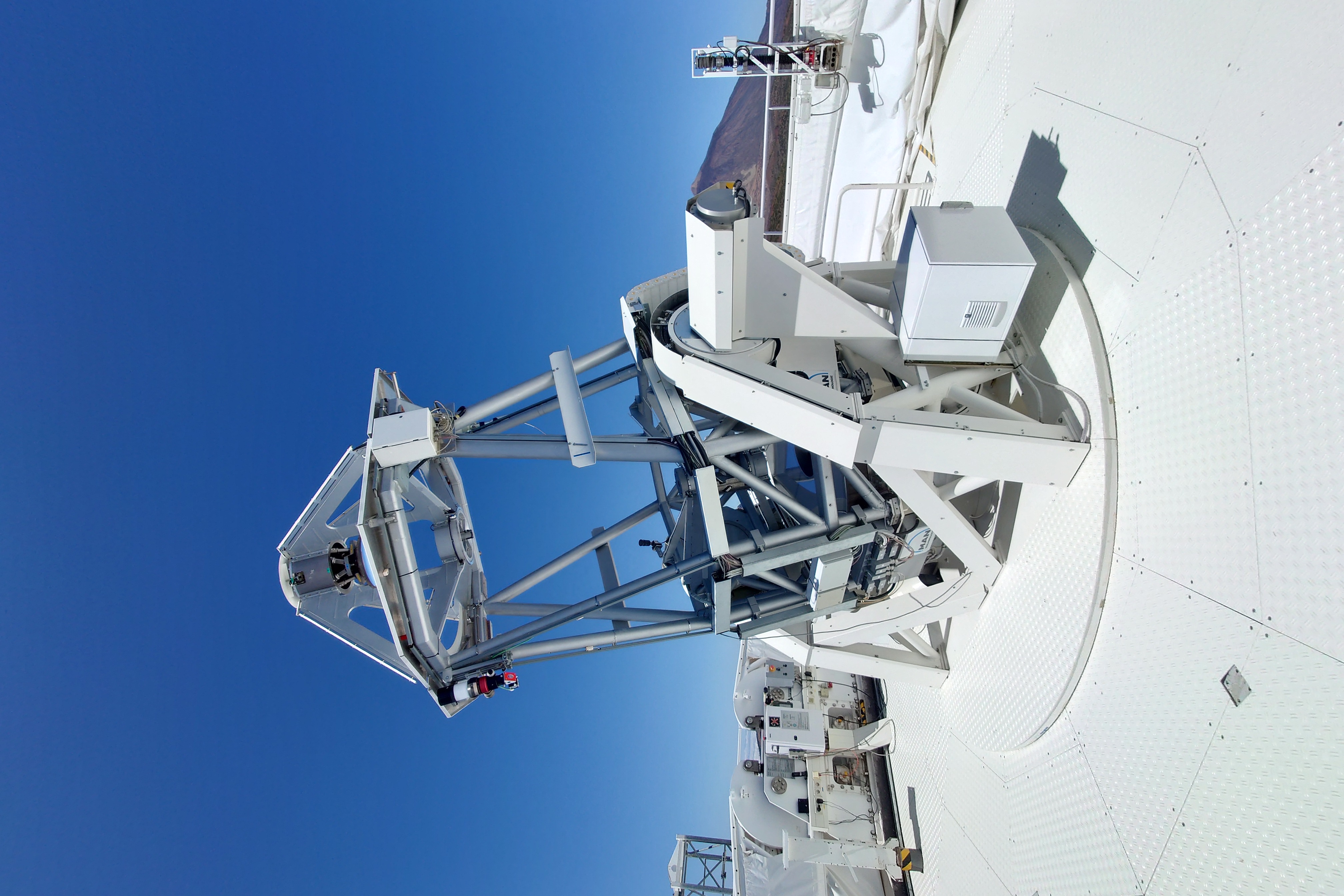 Aufnahme des GREGOR-Teleskops. Mit einer Öffnung von 1,5 Metern ist GREGOR das größte Sonnenteleskop in Europa. Es ist für Beobachtungen der Photosphäre und der Chromosphäre im sichtbaren und dem nahen Infrarot entworfen worden. Betrieben wird es durch das Institut für Sonnenphysik in Freiburg im Breisgau.