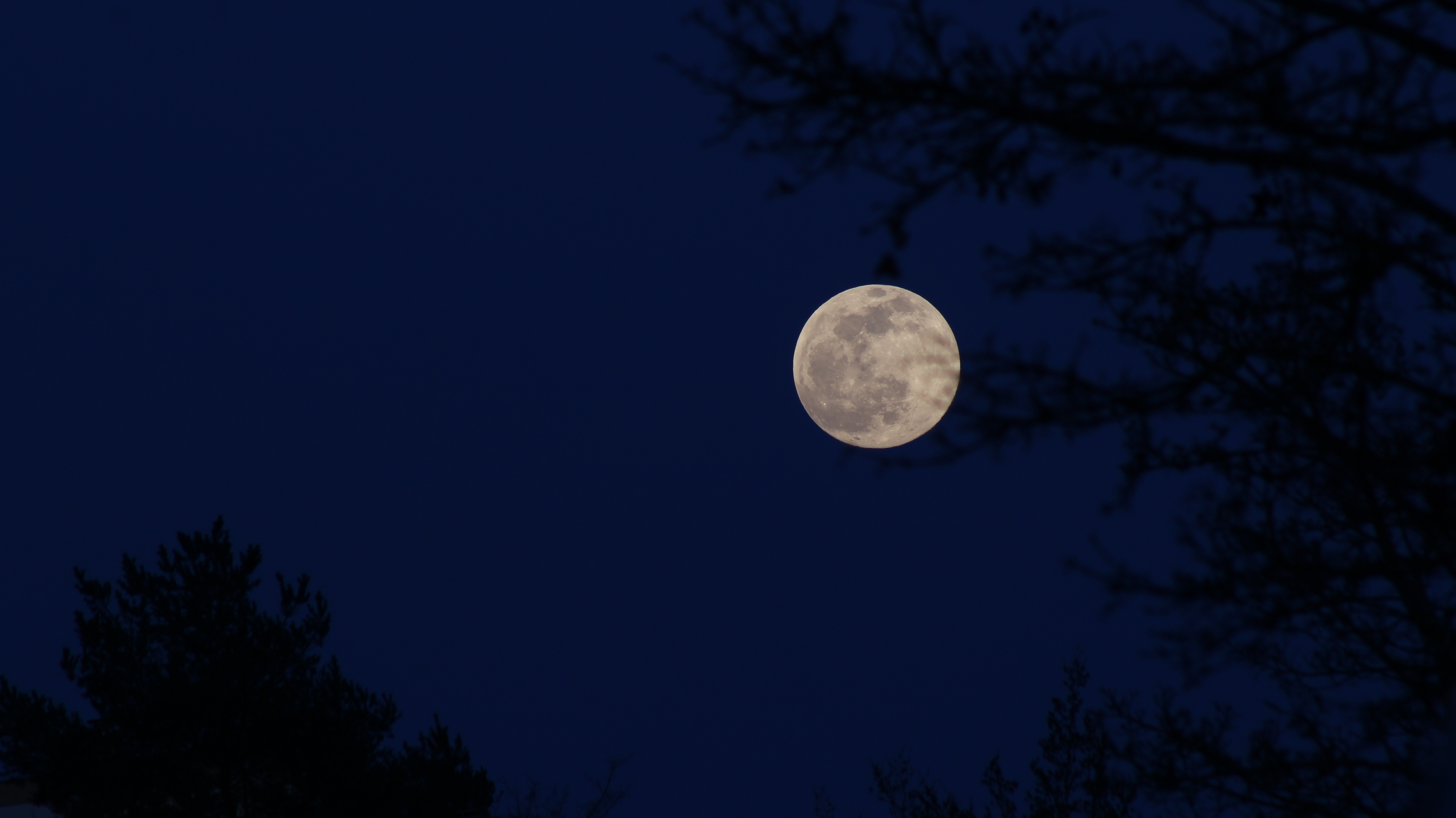 Dieses Bild, welches in Böblingen aufgenommen wurde, macht den Eindruck als ob der Baum im Vordergrund nach dem Vollmond greift.