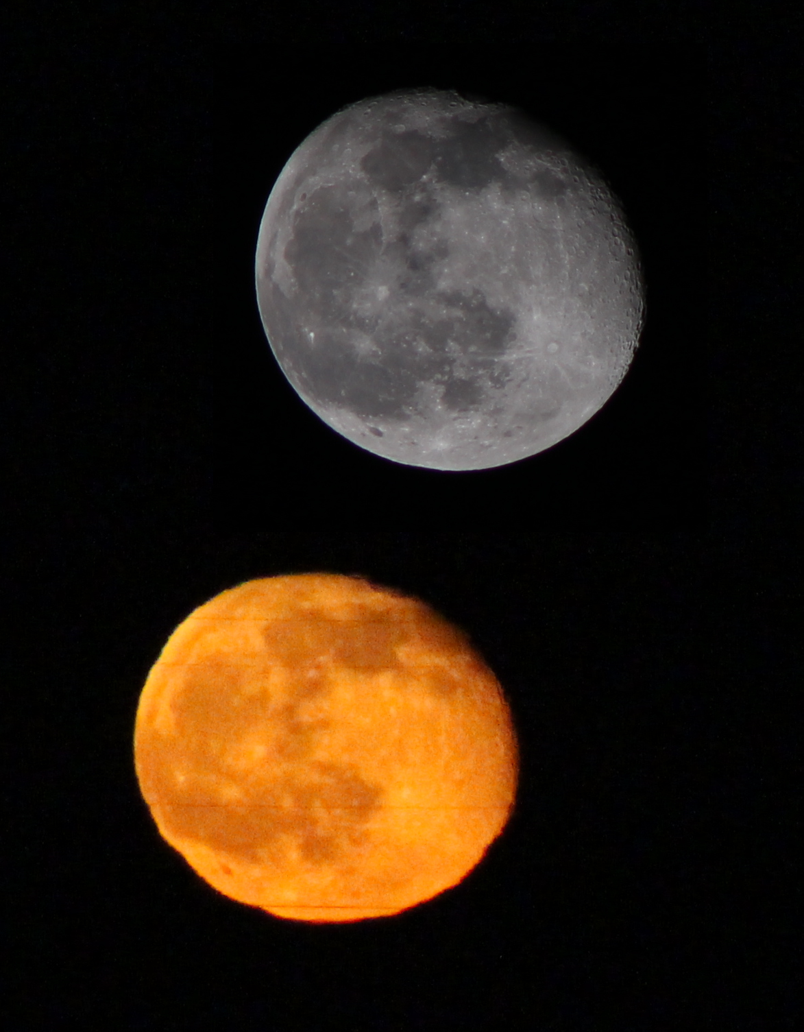 Leserbilder Astronomie: Größenvergleich zwischen horizontnahem und hochstehendem Mond