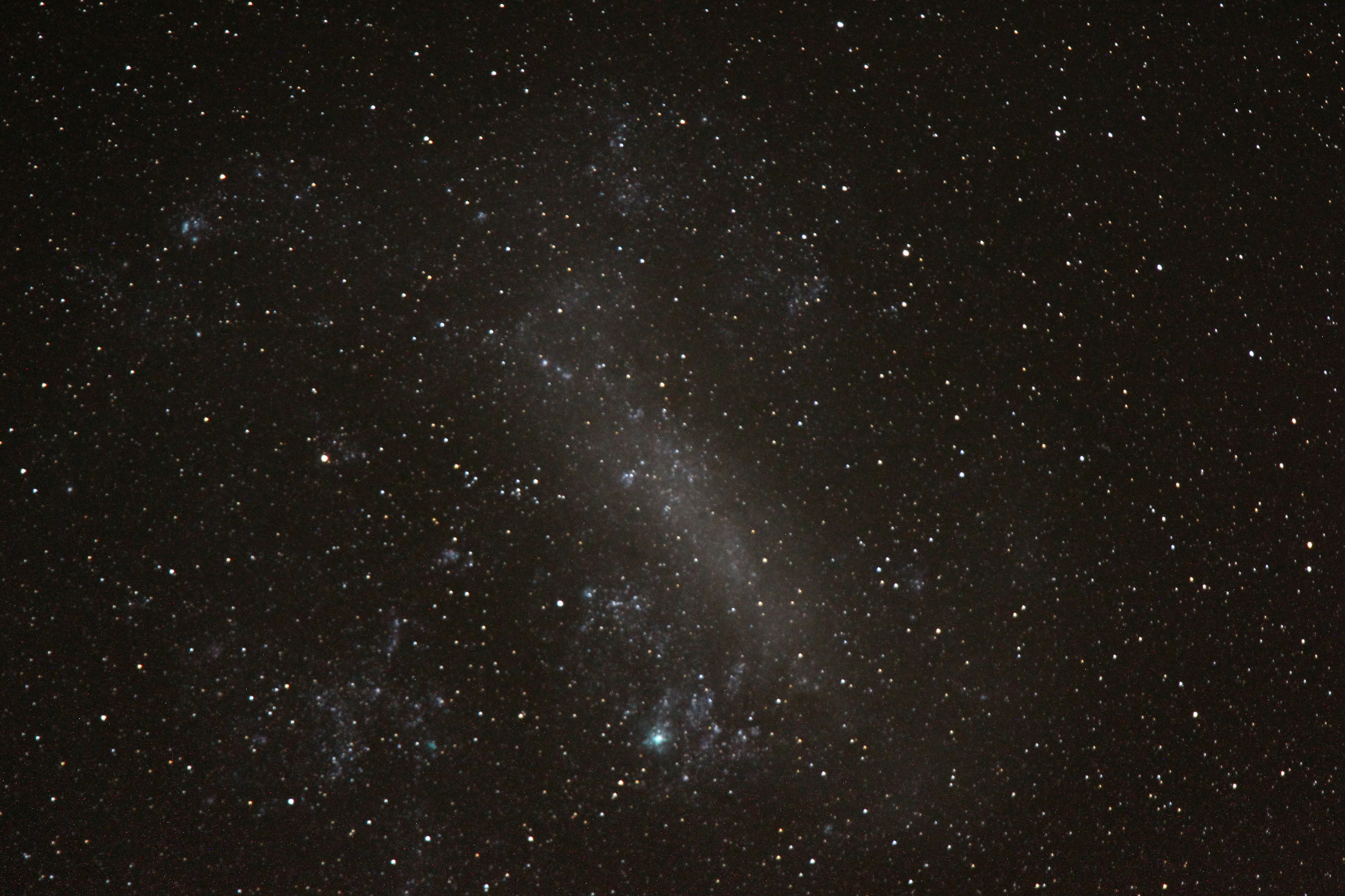 Bei der diesjährigen SuW-Leserreise nach Hakos / Namibia stand die Große Magellansche Wolke in den Morgenstunden hoch über dem Südhorizont. Deutlich ist unten die Sternentstehungsregion des Tarantel-Nebels sichtbar.