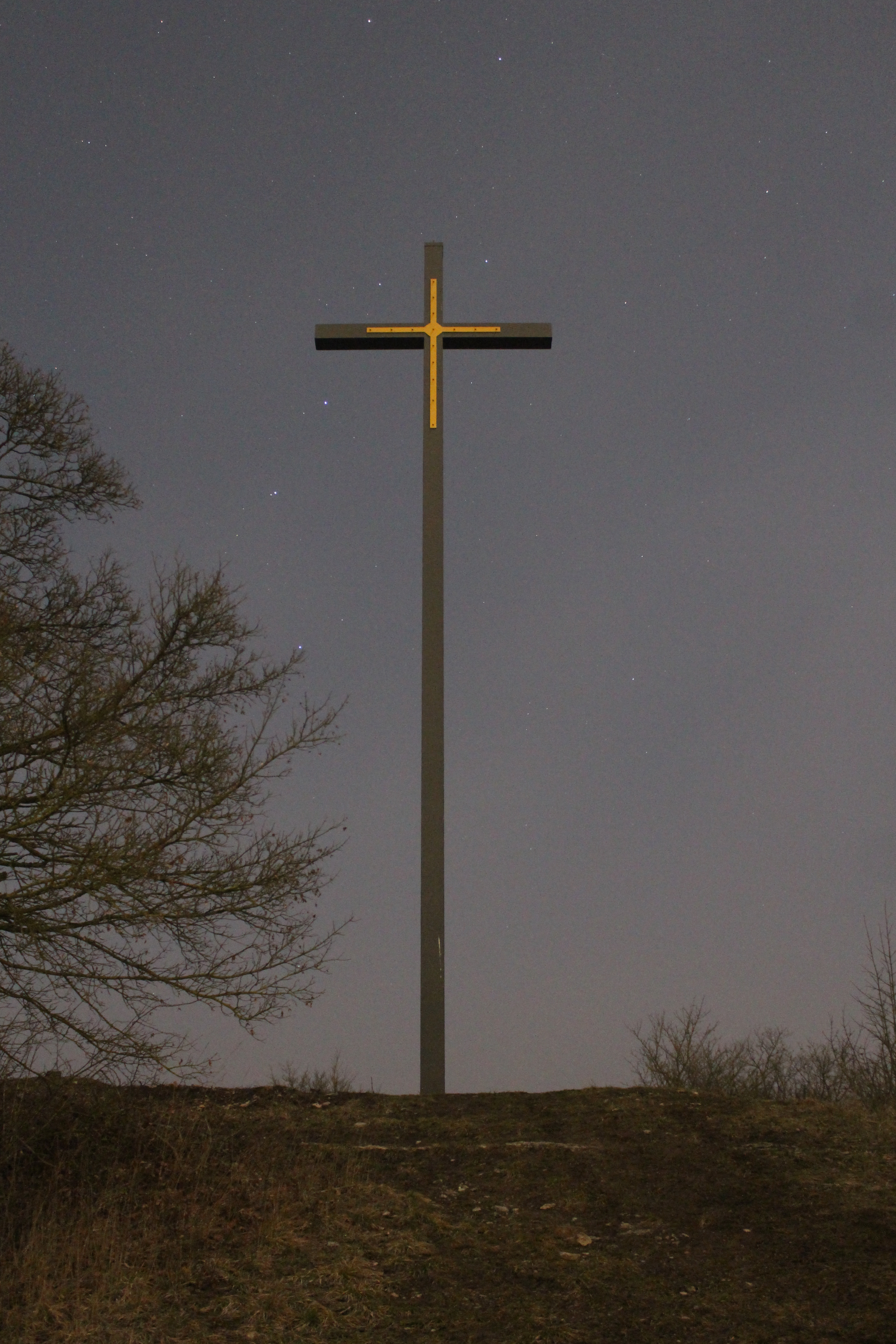 Sternbild Großer Bär mit dem kürzlich erneuerten Rederkreuz, das an den 1796 bei Kämpfen mit den revolutionären französischen Truppen nördlich von Bad Neustadt an der Saale gefallenen Arzt und Heerführer Ignaz Reder erinnern soll, im Vordergrund.