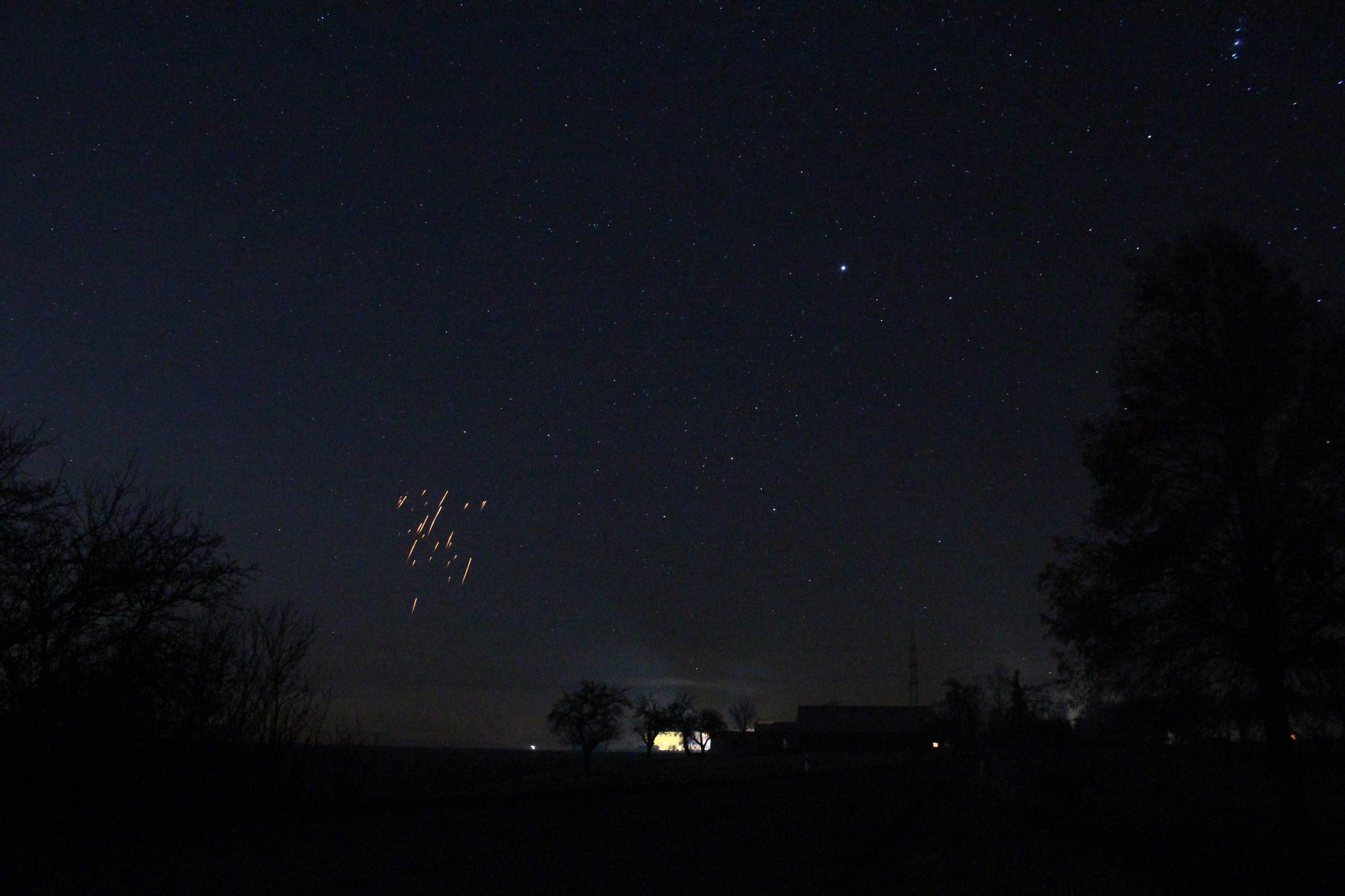 mit einer explodierenden Feuerwerksrakete im Vordergrund