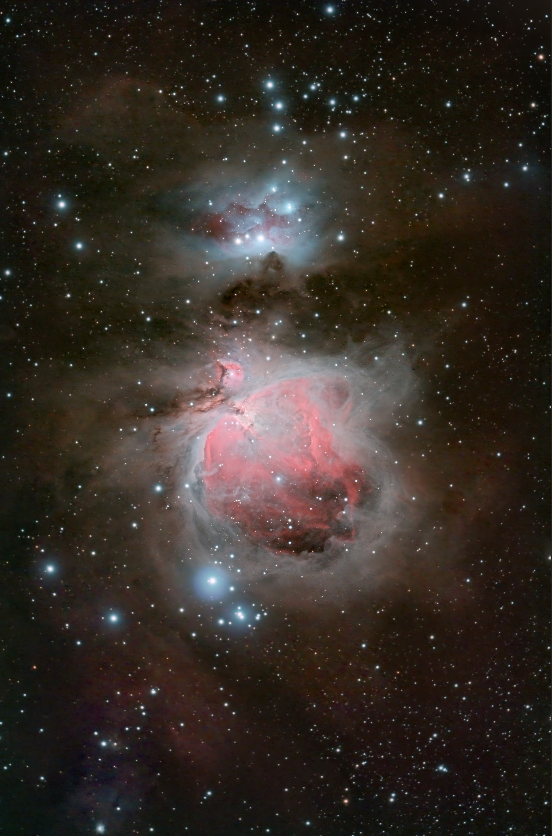 Da ich seit September kein brauchbares Wetter zum Fotografieren hatte, habe ich mich zwischen den Jahren einmal hingesetzt und einige alte Aufnahmen des Orionnebels überarbeitet und kombiniert.