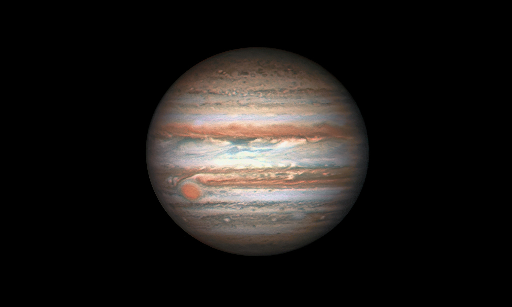 Oberhalb des Hochnebels entstand bei sehr gutem Seeing diese RGB-Aufnahme mit dem Großen Roten Fleck.