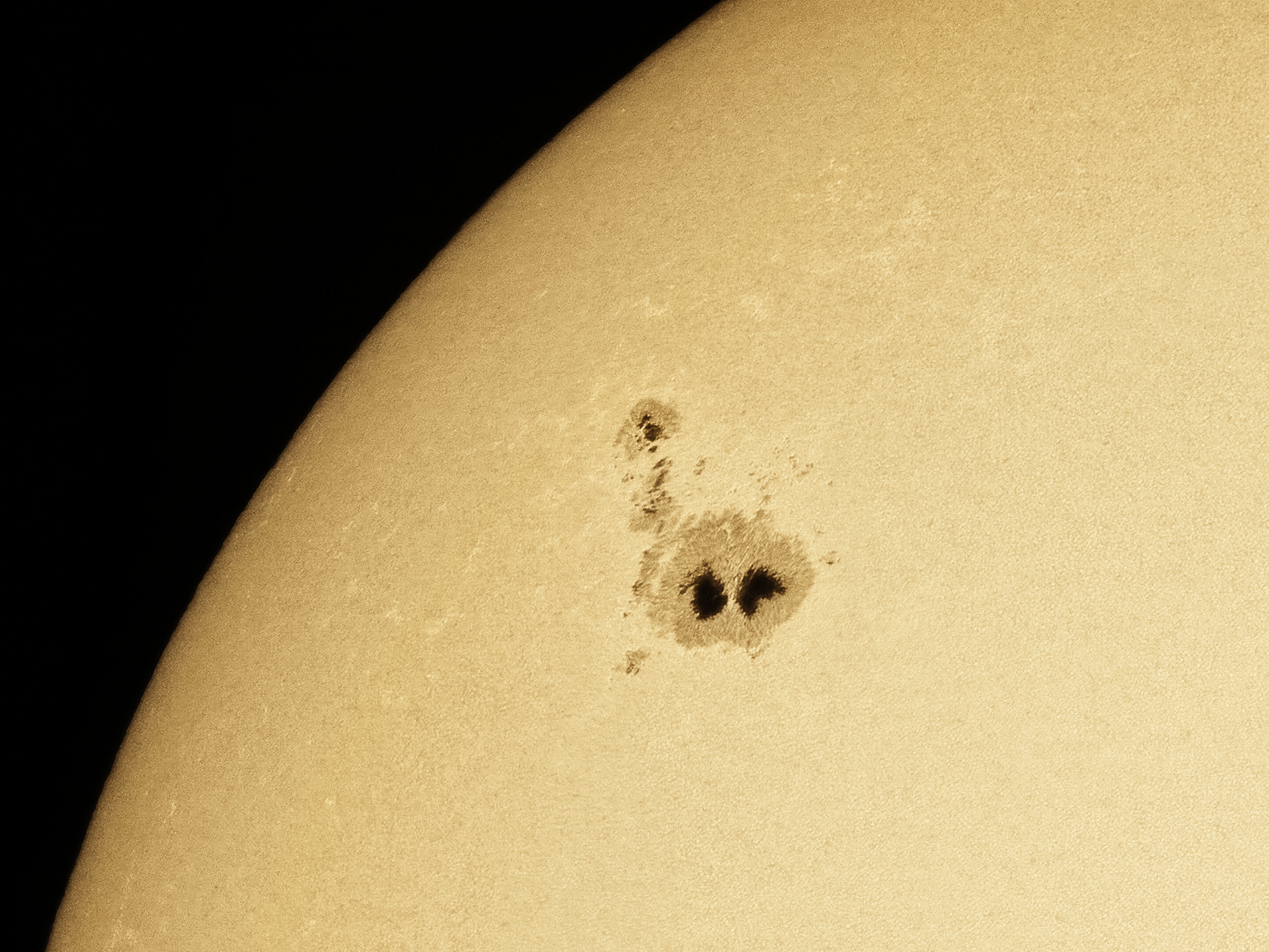 Die AR 14079, kurz nachdem sie auf die Vorderseite gewechselt ist. Visuell sind solch große Flecken immer ein besonderes Erlebnis. Hier habe ich ein Einzelbild aus einem 4k-Video ausgesucht und ein wenig nachbearbeitet.