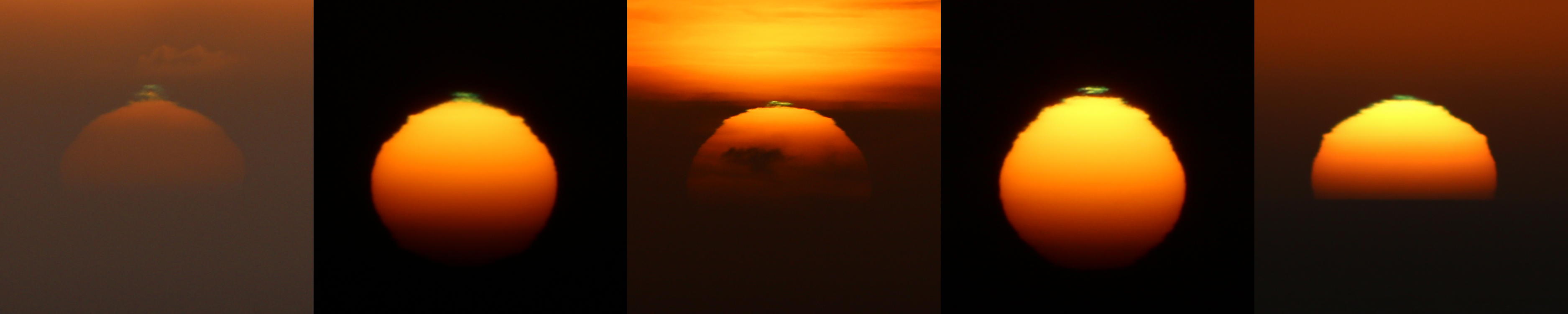 Grüne Blitze aufgenommen bei Sonnenuntergang an fünf aufeinanderfolgenden Abenden an der chilenischen Pazifikküste.