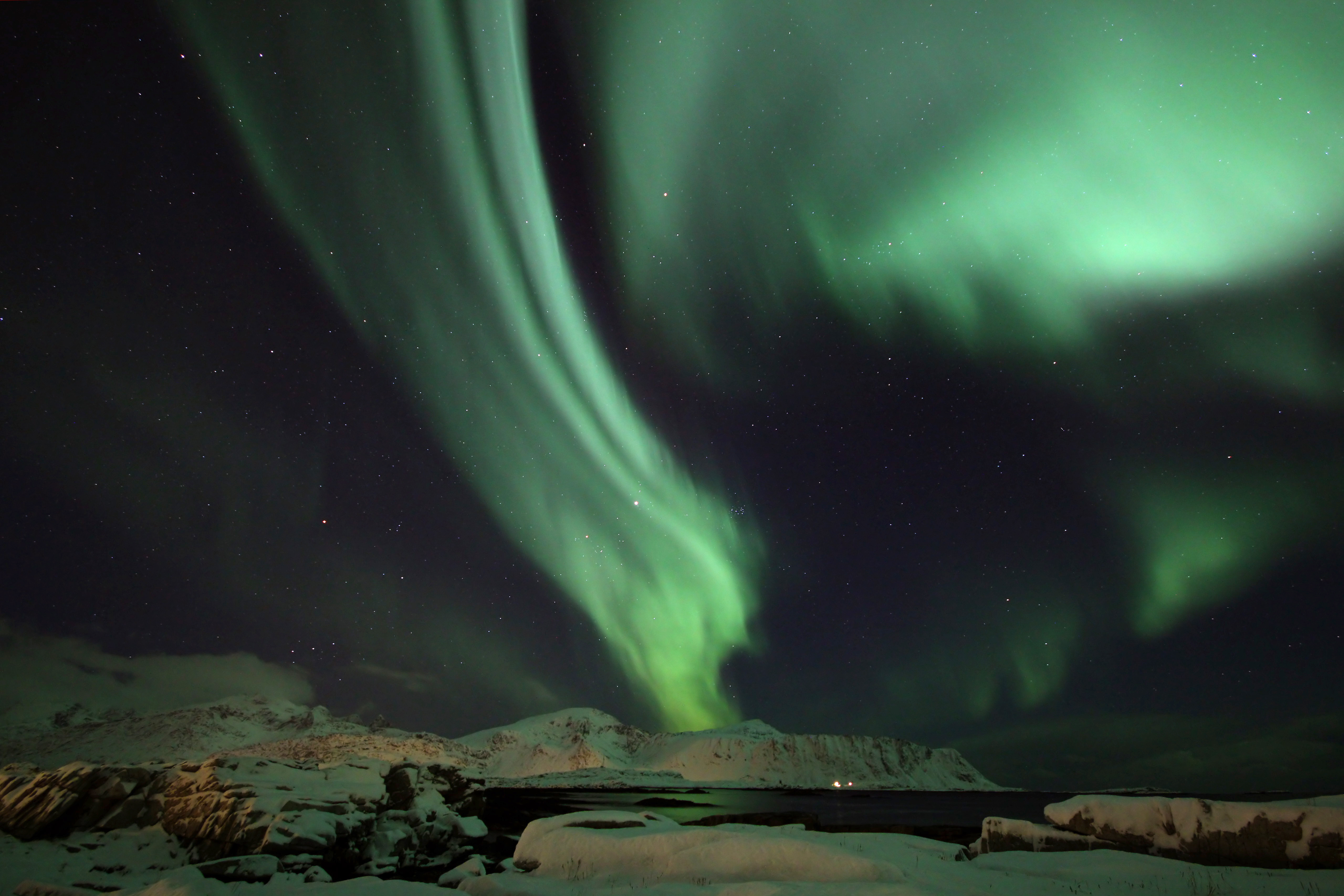 Am 3. März 2013 gab es über den Lofoten in Norwegen eine erhöhte Nordlichtaktivität. Um 23:04 Uhr MEZ konnte ich diese Aufnahme gewinnen, als das Nordlicht die ganze verschneite Insellandschaft in ein grünes, beinahe surreales Licht tauchte. Weitere Bilder und Videos finden Sie auf www.zumnordlicht.com.
