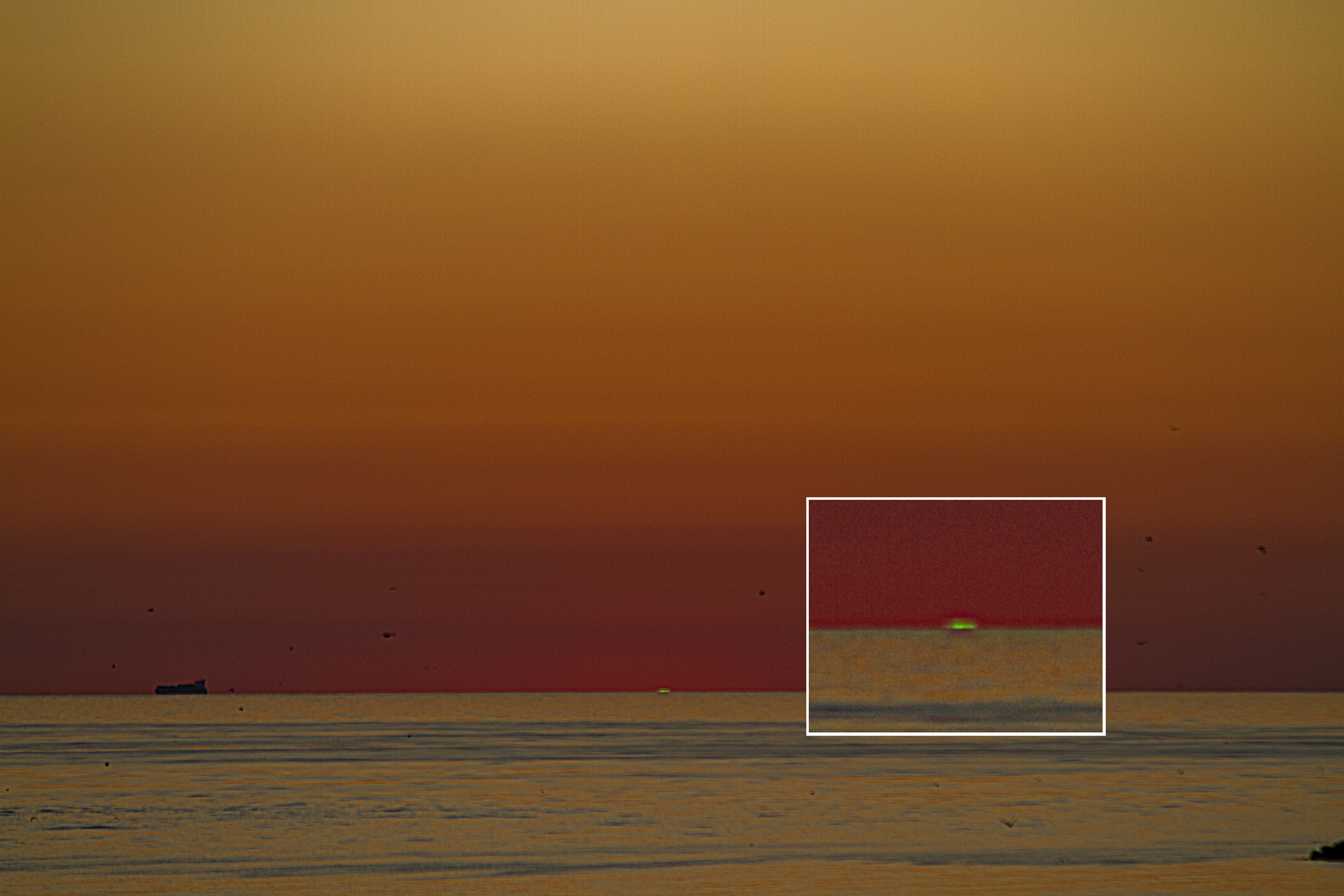 Der Sonnenuntergang vom 10. Juli 2017 zeigte einen Grünen Blitz. Die Aufnahme entstand von der Insel Helgoland aus.