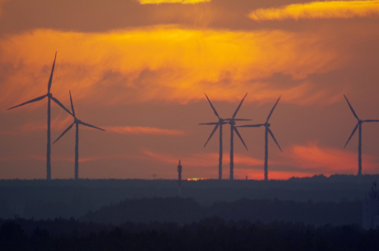 Die atmosphärische Refraktion bzw. ihre Turbulenzen sind in Form von schlechtem Seeing oft ein Ärgernis für den Astronomen. Man kann allerdings auch aus der Not eine Tugend machen und die Erscheinungen der atmosphärischen Optik beobachten. Eine recht seltene davon ist der Grüne Strahl. Darunter versteht man eine Grünfärbung des letzten sichtbaren Teils der Sonnenscheibe bei Sonnenuntergang (bzw. umgekehrt bei Sonnenaufgang). Verantwortlich ist die Dispersion der Refraktion sowie die Tatsache, dass nach Absorption und Streuung in der Atmosphäre hauptsächlich rote und blaugrüne Wellenlängen im direkten Sonnenlicht verbleiben. Um überhaupt deutlich sichtbar zu sein, muss die Dispersion allerdings durch Anomalien der Refraktion verstärkt werden, wie sie z. B. durch die Temperaturschichtung über dem Meer auftreten. Dass eine Beobachtung auch über Land möglich ist, zeigt dieses Bild, aufgenommen vom Aussichtspunkt am Sornoer Kanal bei Senftenberg in der Niederlausitz. Am Horizont ist der etwa 15 km entfernte Windpark Klettwitz zu sehen. Die Hochkippe, auf der er errichtet wurde, bildet für die Sonne hier auch den Landschaftshorizont.