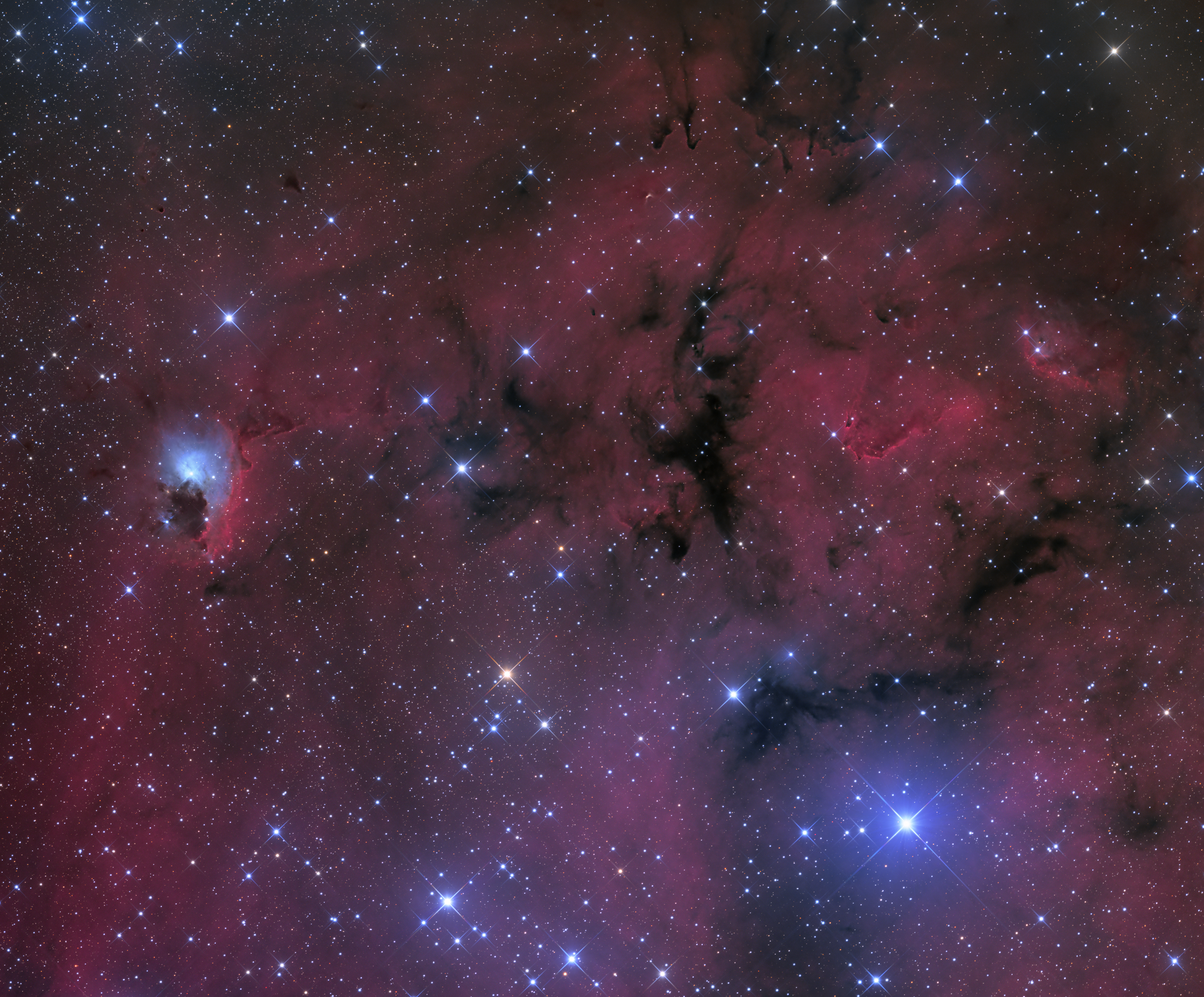 Zahlreiche Dunkelwolken dominieren diesen Bildausschnitt des großen Gum-Nebels (Gum 14) im Sternbild Segel (Vela).