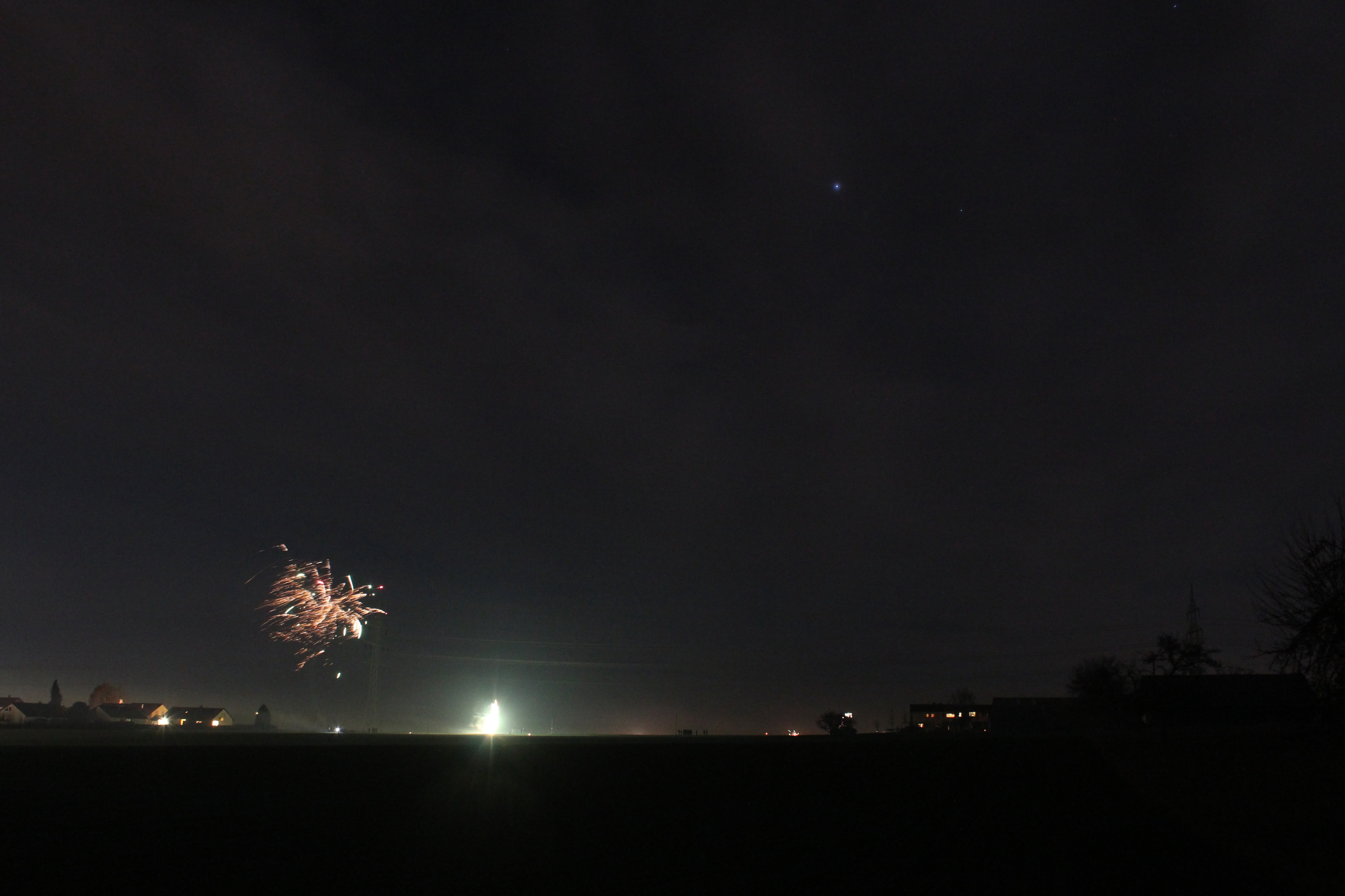Auch wenn die Silvesternacht 2022/2023 nicht sternenklar war, gelang es mir westlich des Sindelfinger Ortsteils Maichingen die hellsten Sterne des Großen Hundes zusammen mit dem Sylvesterfeuerwerk zu fotografieren. Mit diesem Bild wünsche ich der Redaktion von Sterne und Weltraum und allen Leuten, die auf http://astronomie-heute.de/leserbilder Bilder hochladen, ein schönes Jahr 2023!