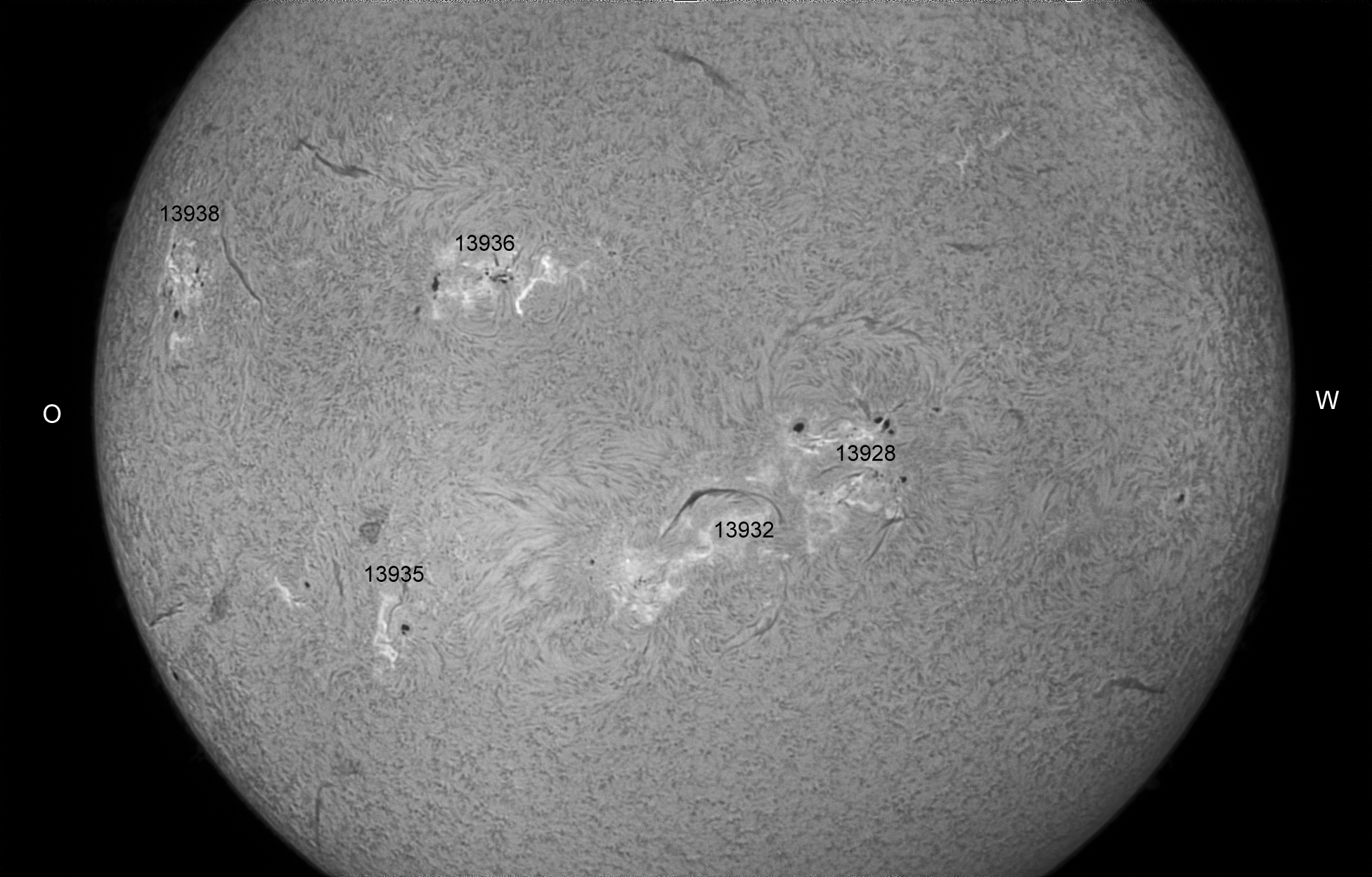Viel los auf der Sonne! Pünktlich zum Weihnachtsfest präsentiert sich die Chromosphäre mit fünf großen Aktivitätsgebieten.