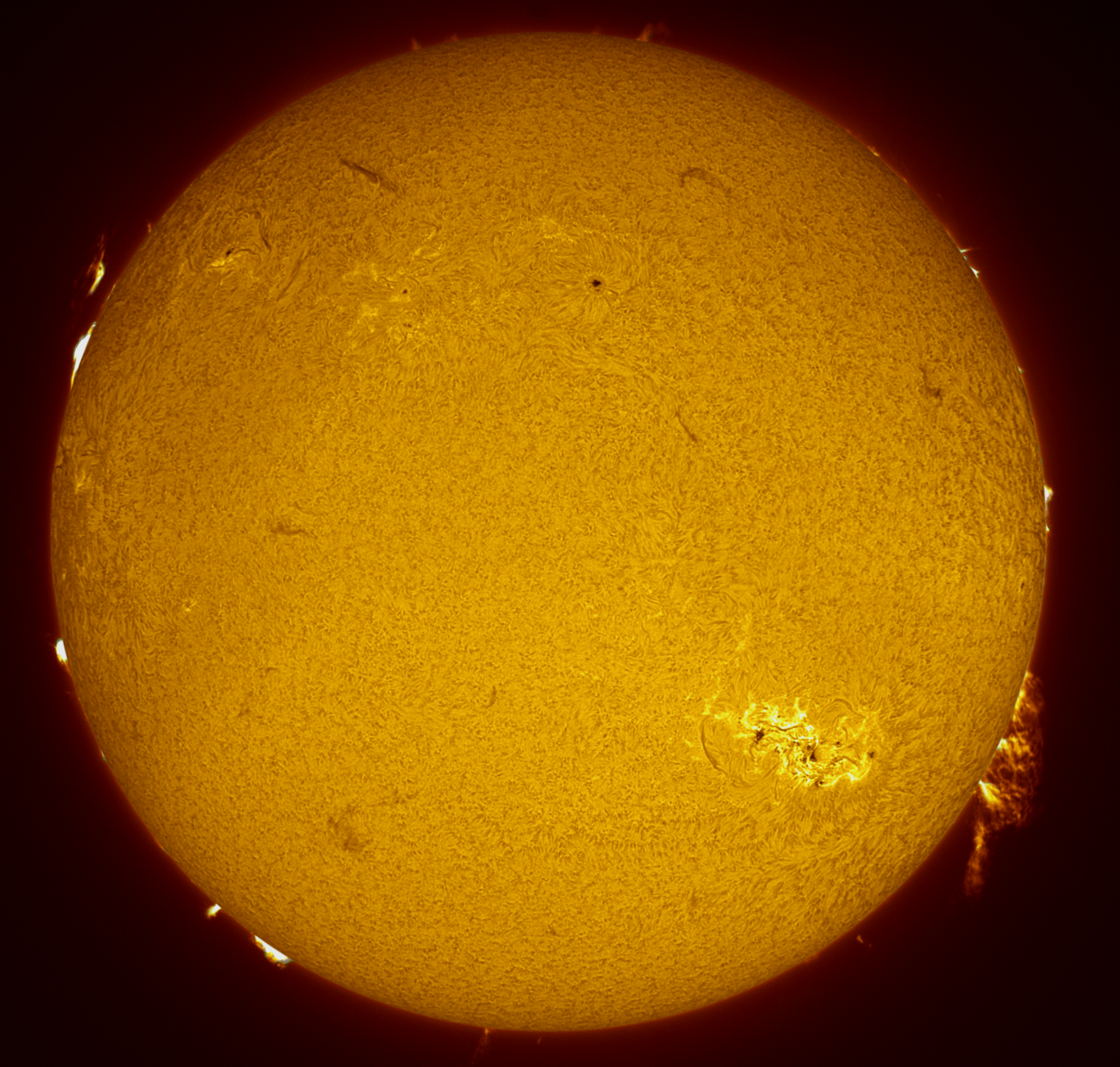 Mosaik aus mehreren Bildern. Diese Protuberanzen lösten die Polarlichter am zweiten Mai-Wochenende aus.