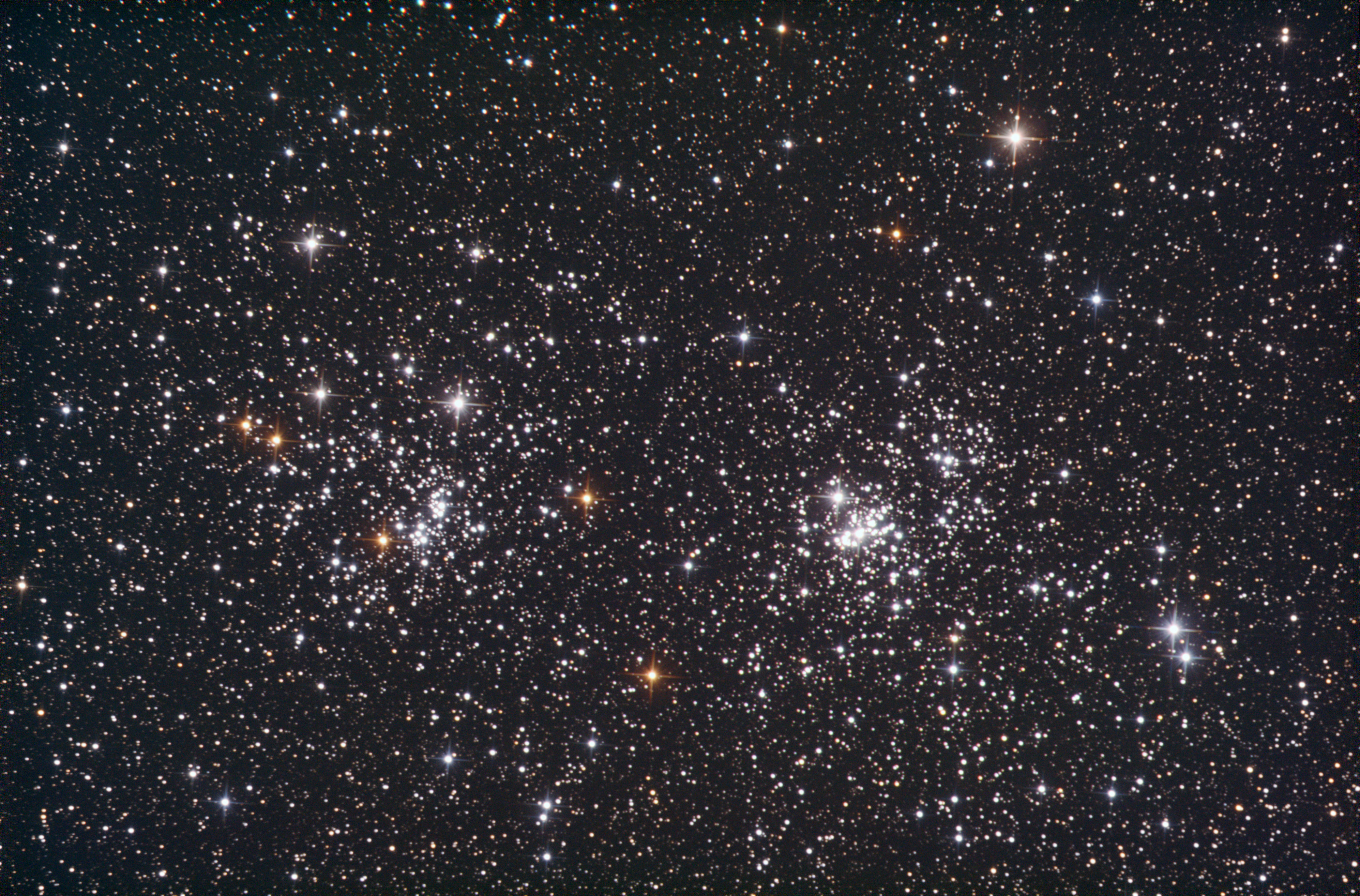 Mein allererstes Bild mit dem neuen 8-Zoll, f:5 ONTC-Fotonewton: H und Chi im Perseus. Das Teleskop wurde mit einer EQ6-Montierung nachgeführt, Guiding erfolgte am Sucher mit dem MGEN.