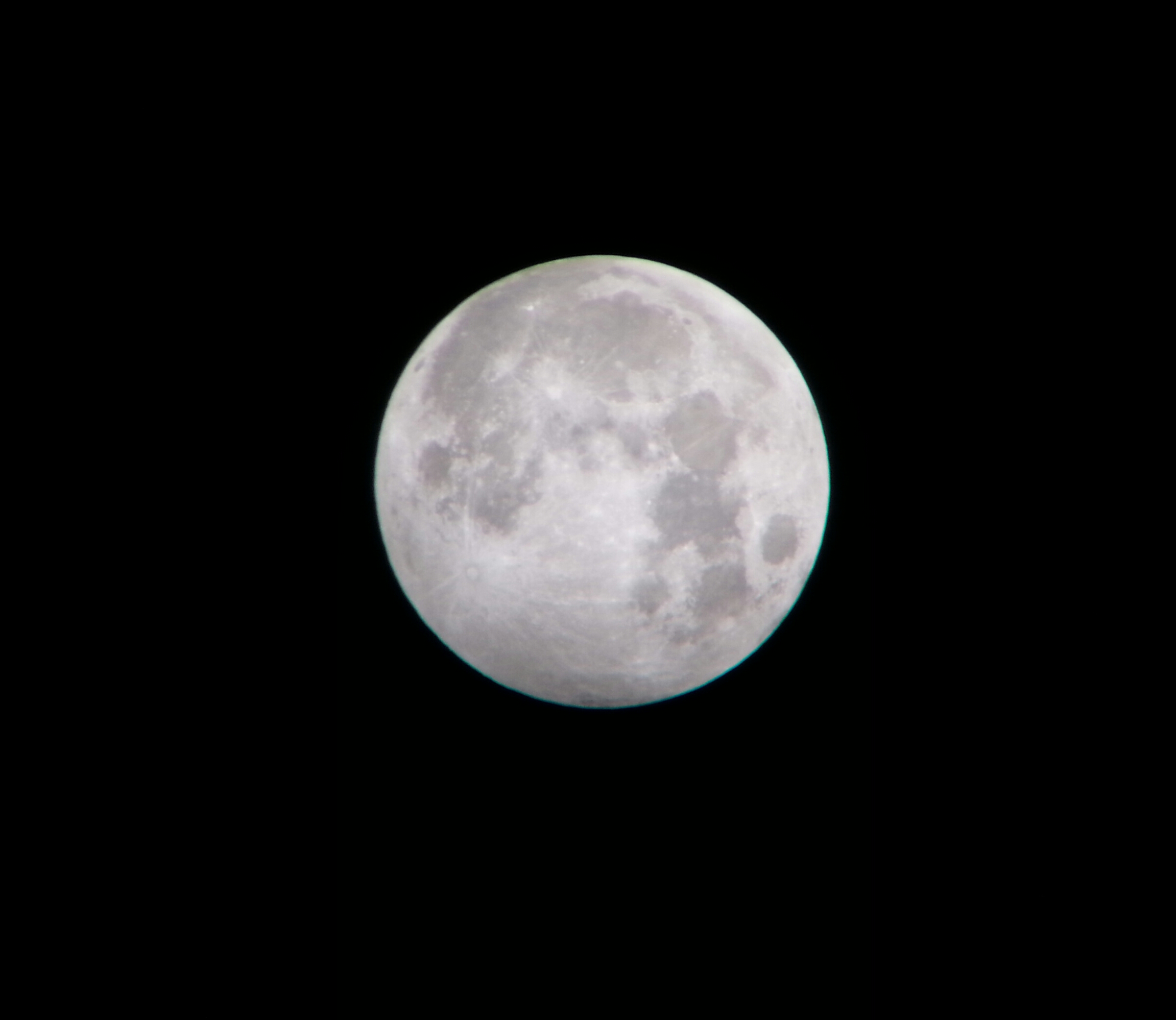 Auf dieser Aufnahme des Maximums der Halbschatten-Mondfinsternis vom 19.Oktober 2013 fällt am südlichen Mondrand eine leichte Verdunklung auf.