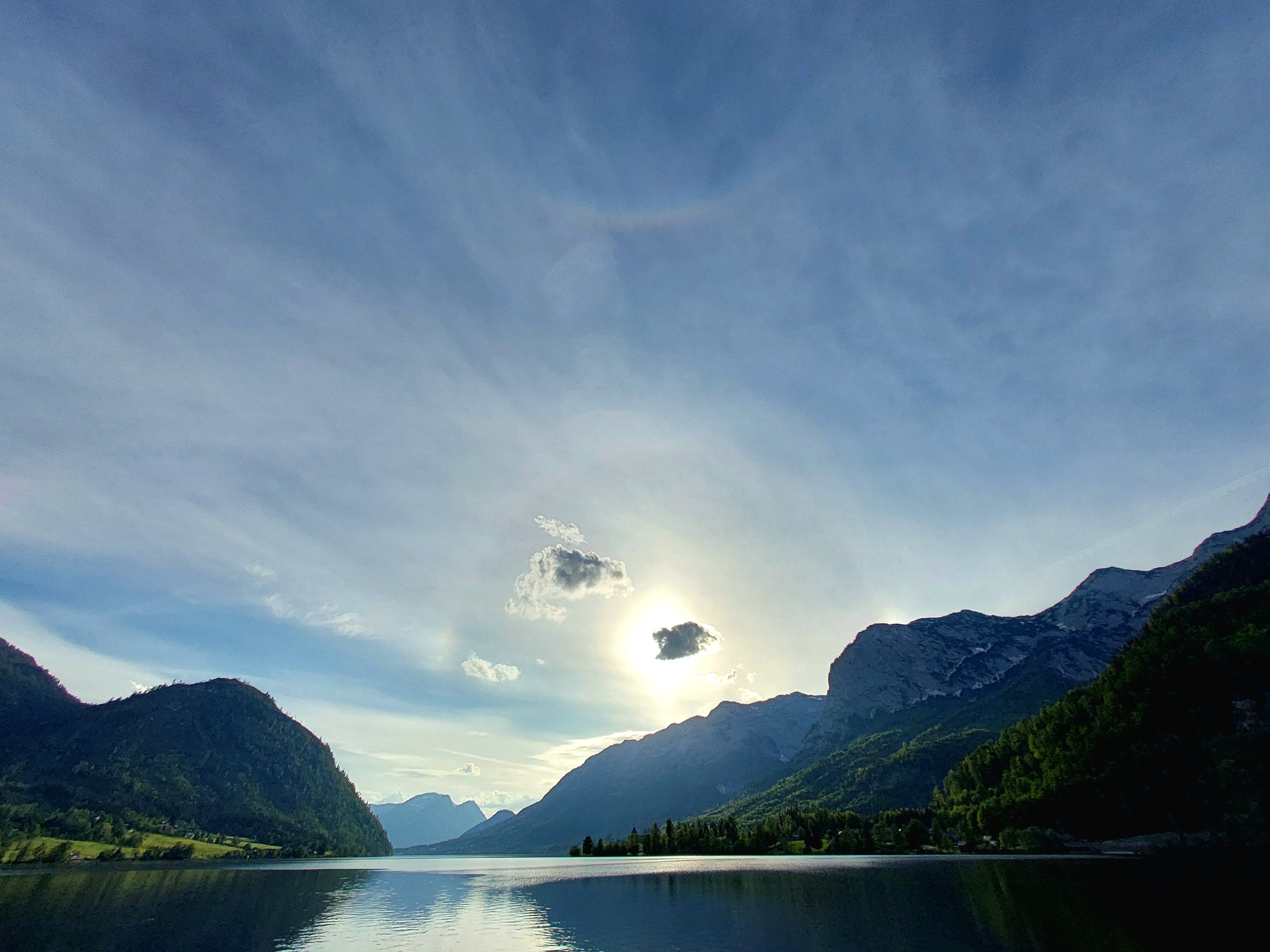 Halo über dem Grundlsee von Gössl aus nach Westen.