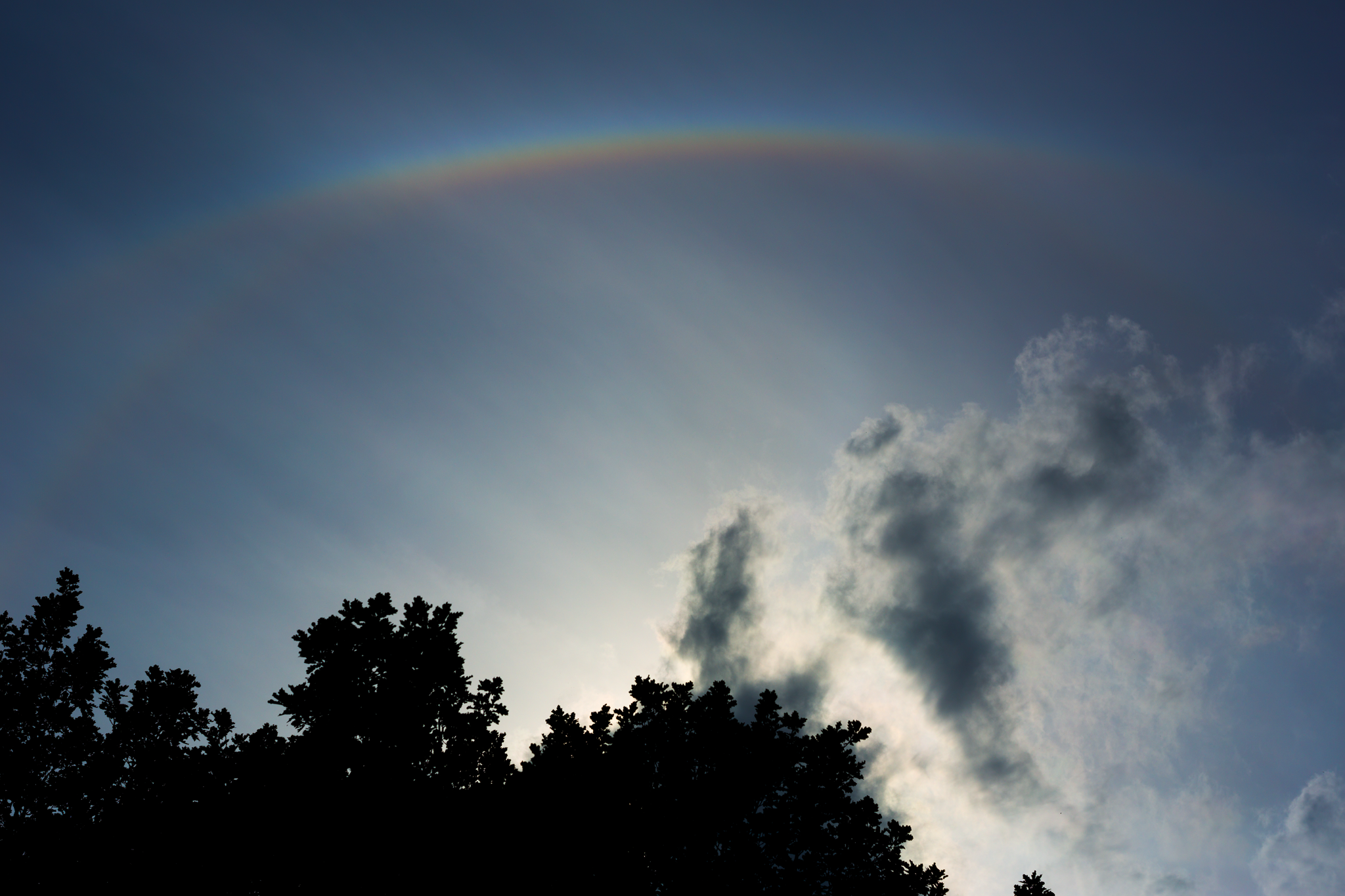 EIn farbenprächtiger oberer Berührungsbogen mit nach unten verlaufenden Ansätzen des 22-Grad-Rings erschien am Nachmittag des 11. August 2021 über Freital.