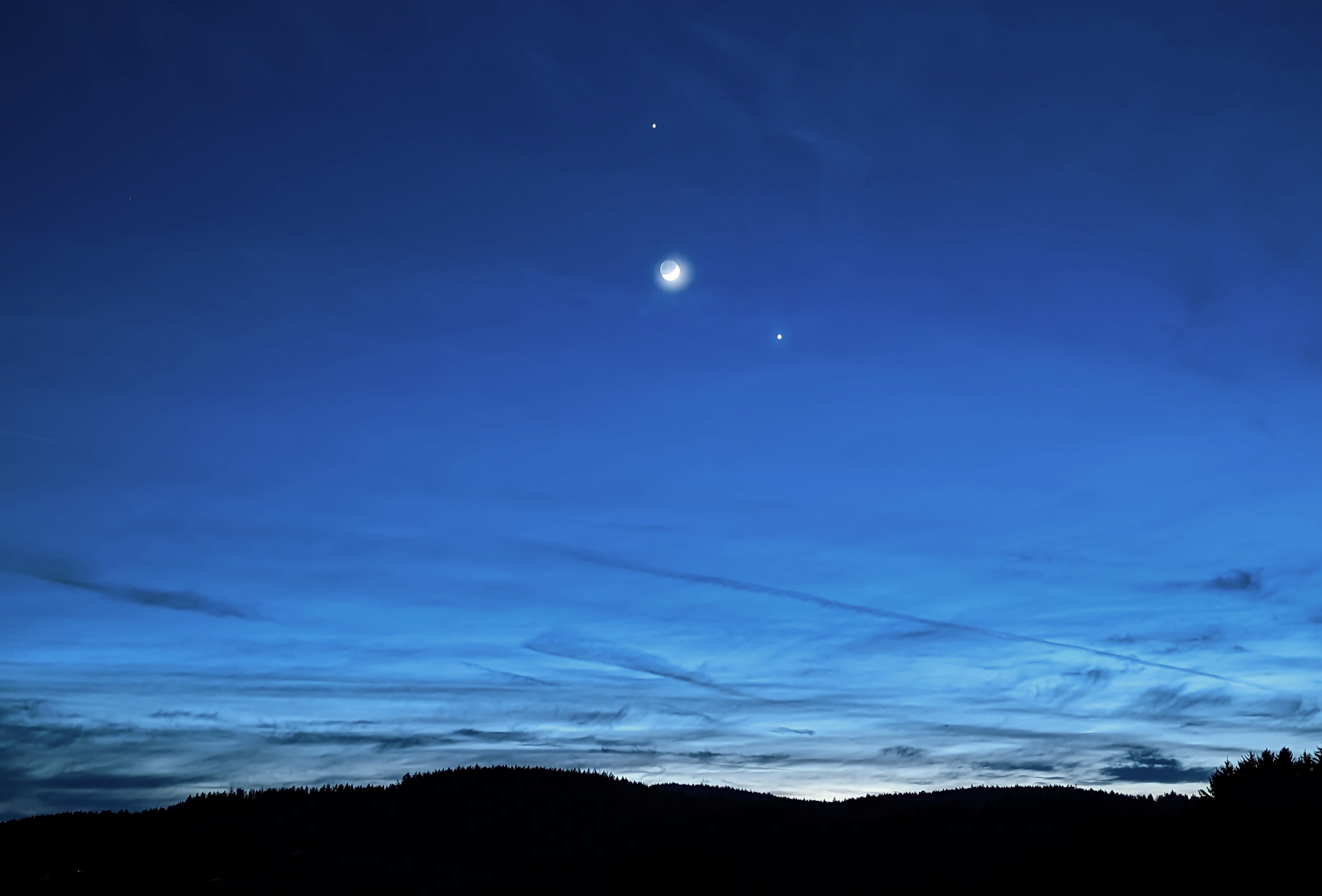 Ein unvergesslicher Moment: Schnappschuss der Konjunktion Venus, Jupiter und Mond.