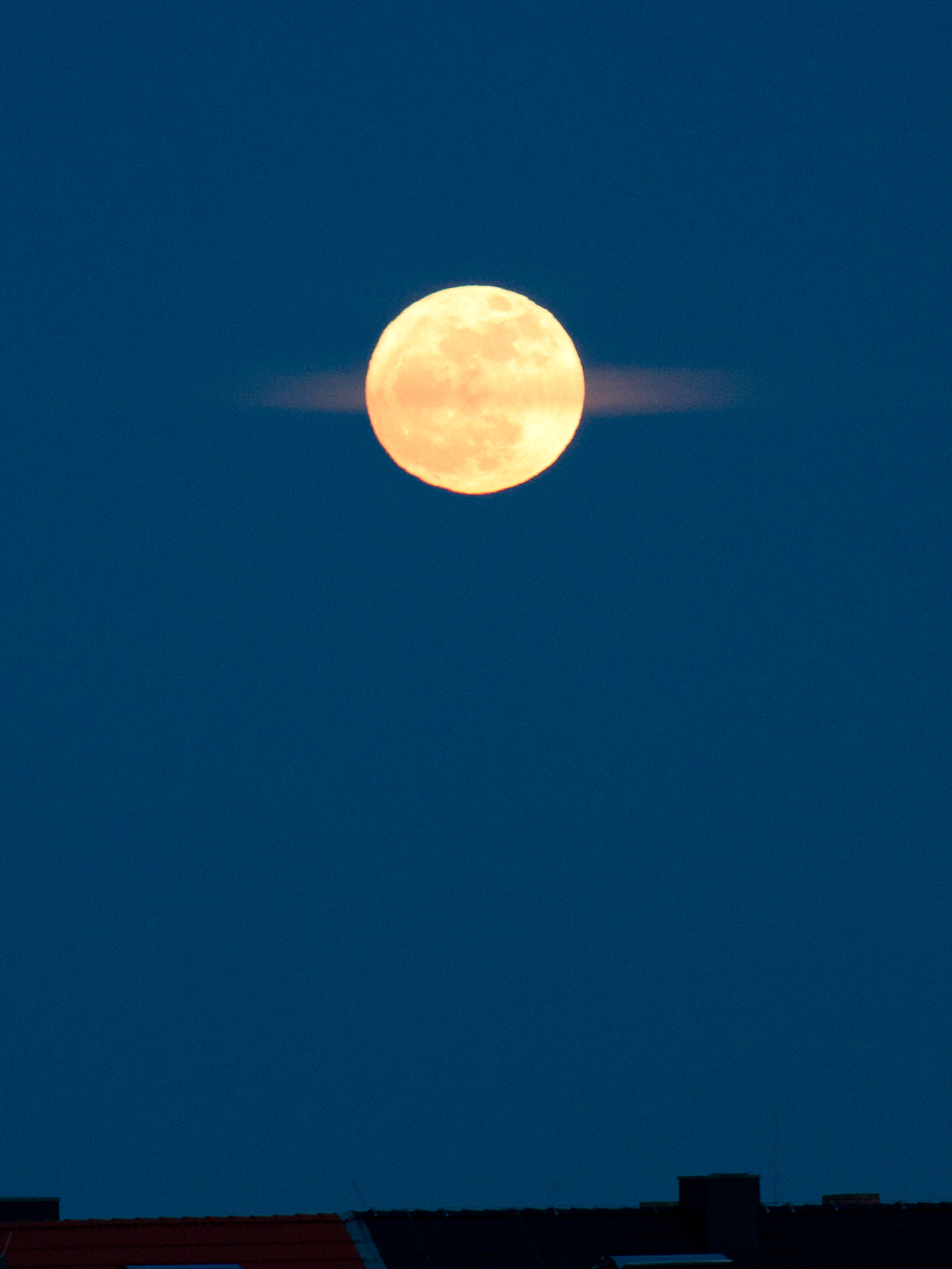 Natürlich nicht! Es handelt sich vielmehr um eine dünne Wolkenschicht, die im richtigen Moment vor dem aufgehenden Mond diesen Eindruck erweckte.