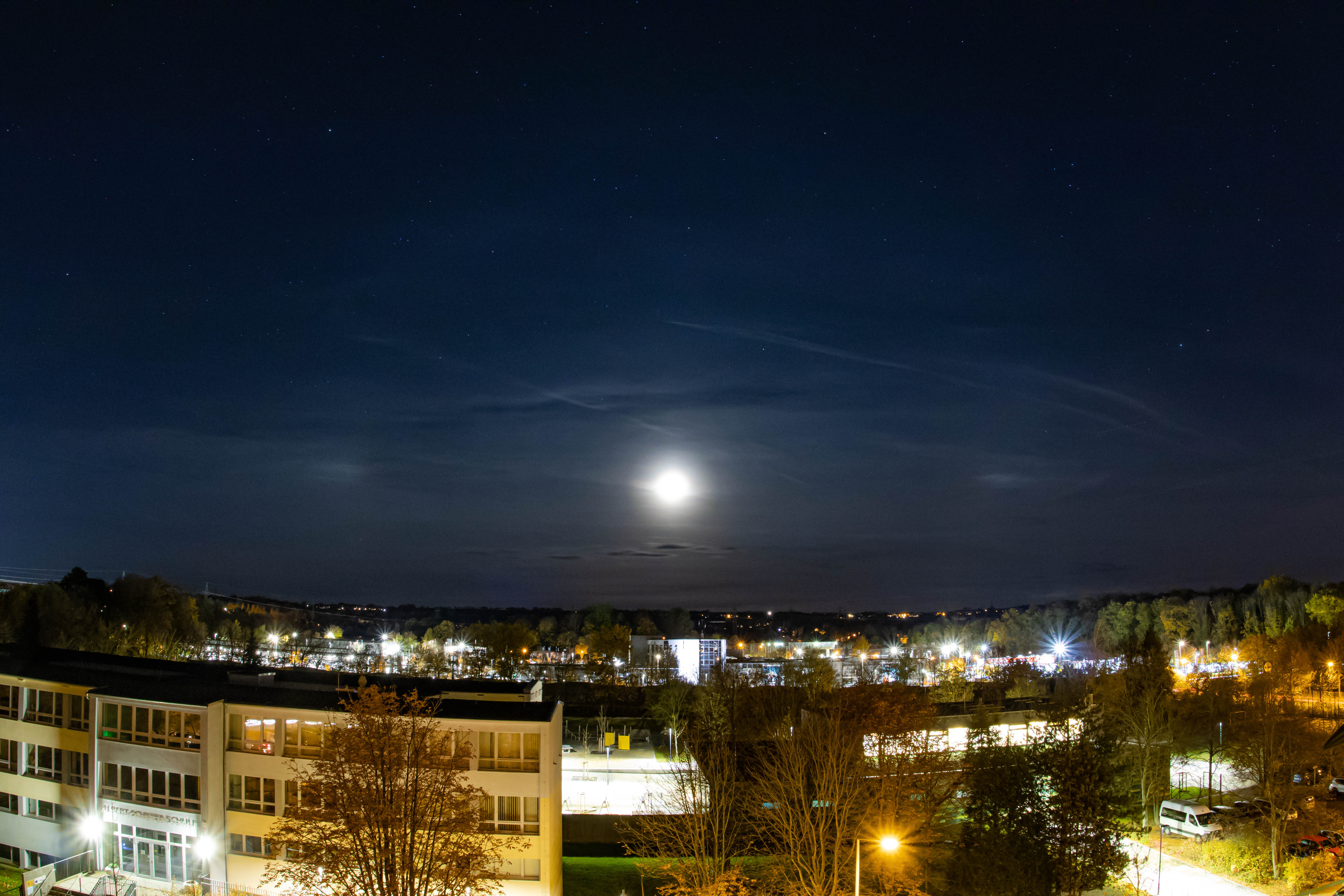 In der Nacht gab es durch ein paar Schleierwolken für kurze Zeit helle Nebenmonde. Trotz Lichtverschmutzung der Stadt waren sie gut mit bloßem Auge sichtbar.