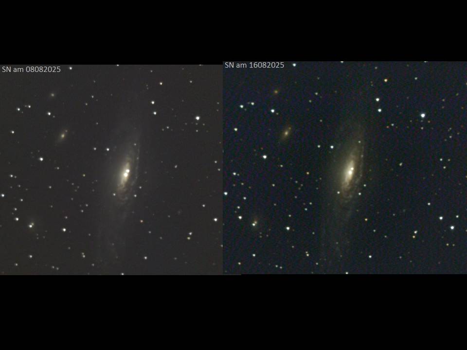 Nachdem ich am 8. August von der Helligkeitszunahme der Supernova überrascht war, wollte ich wissen, wie sich die Lichtkurve weiter entwickelt. Nur acht Tage später hat die Helligkeit merkbar abgenommen !