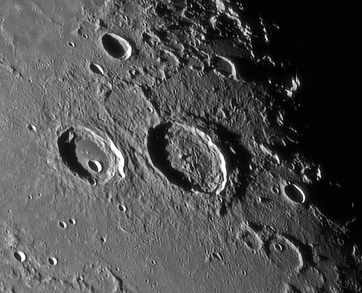 In der Morgendämmerung ergab sich trotz schwieriger Bedingungen - Bewölkung und erhebliche Luftunruhe - ein guter Moment für diese Mondaufnahme.