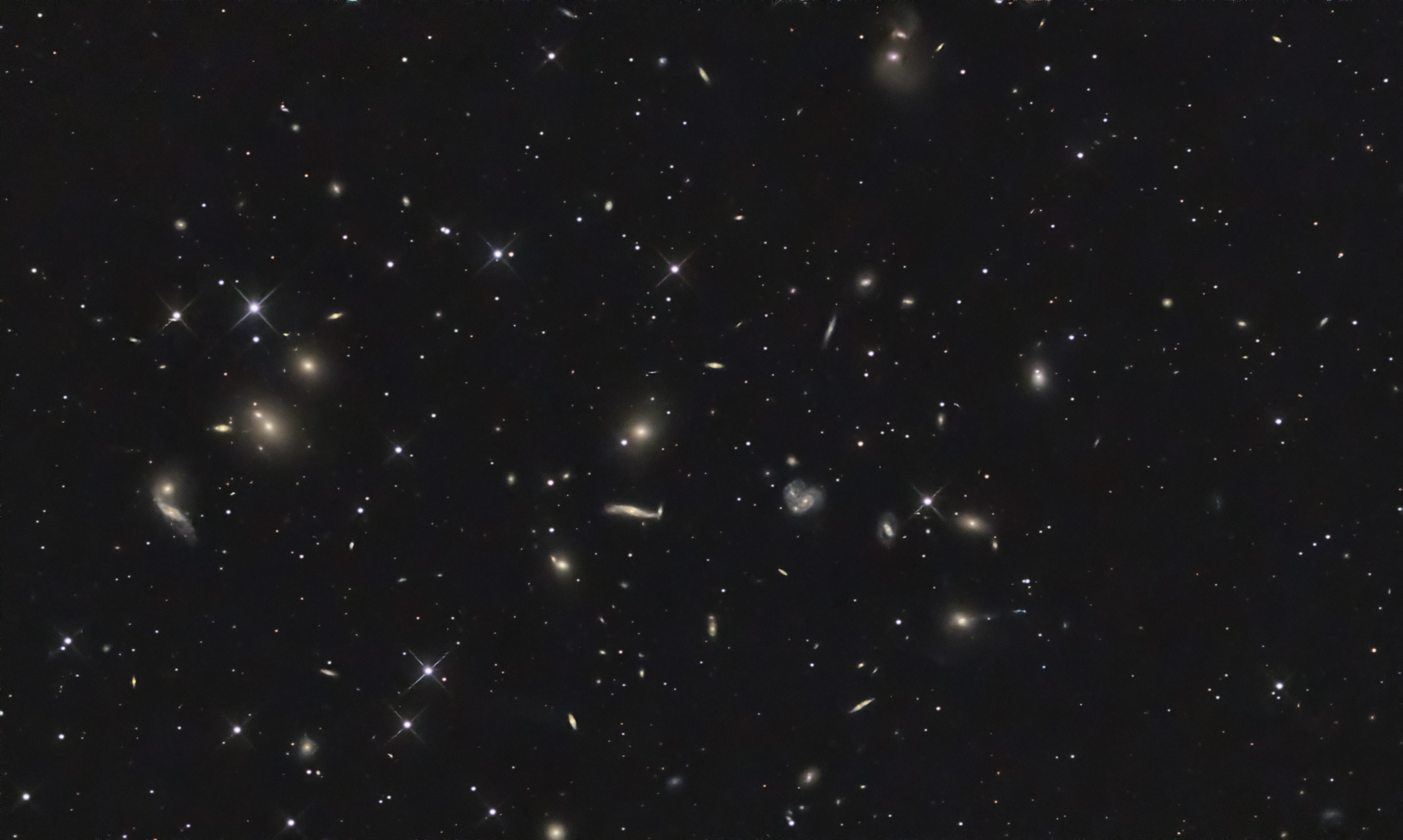Zwei schöne klare Nächte konnte ich nutzen, um den schönen Herkules-Cluster zu fotografieren. Der Herkules-Cluster, auch bekannt als Abell 2151, ist ein Galaxienhaufen im Sternbild Herkules. Hier sind einige Informationen über den Herkules-Cluster: Der Herkules-Cluster befindet sich etwa 500 Millionen Lichtjahre von der Erde entfernt. Er gehört zum größeren Herkules-Superhaufen, der mehrere Galaxienhaufen umfasst. Der Herkules-Cluster besteht aus rund 200 Galaxien. Es handelt sich um einen reichen Galaxienhaufen mit vielen Spiralgalaxien. Der Cluster zeigt auch eine große Anzahl von wechselwirkenden Galaxien, die durch gravitative Kräfte miteinander interagieren. Die Galaxien im Herkules-Cluster weisen eine Vielfalt an Formen und Größen auf. Eine bemerkenswerte Galaxie in der Nähe des Herkules-Clusters ist NGC 6050, die durch eine galaktische Kollision entstanden ist.