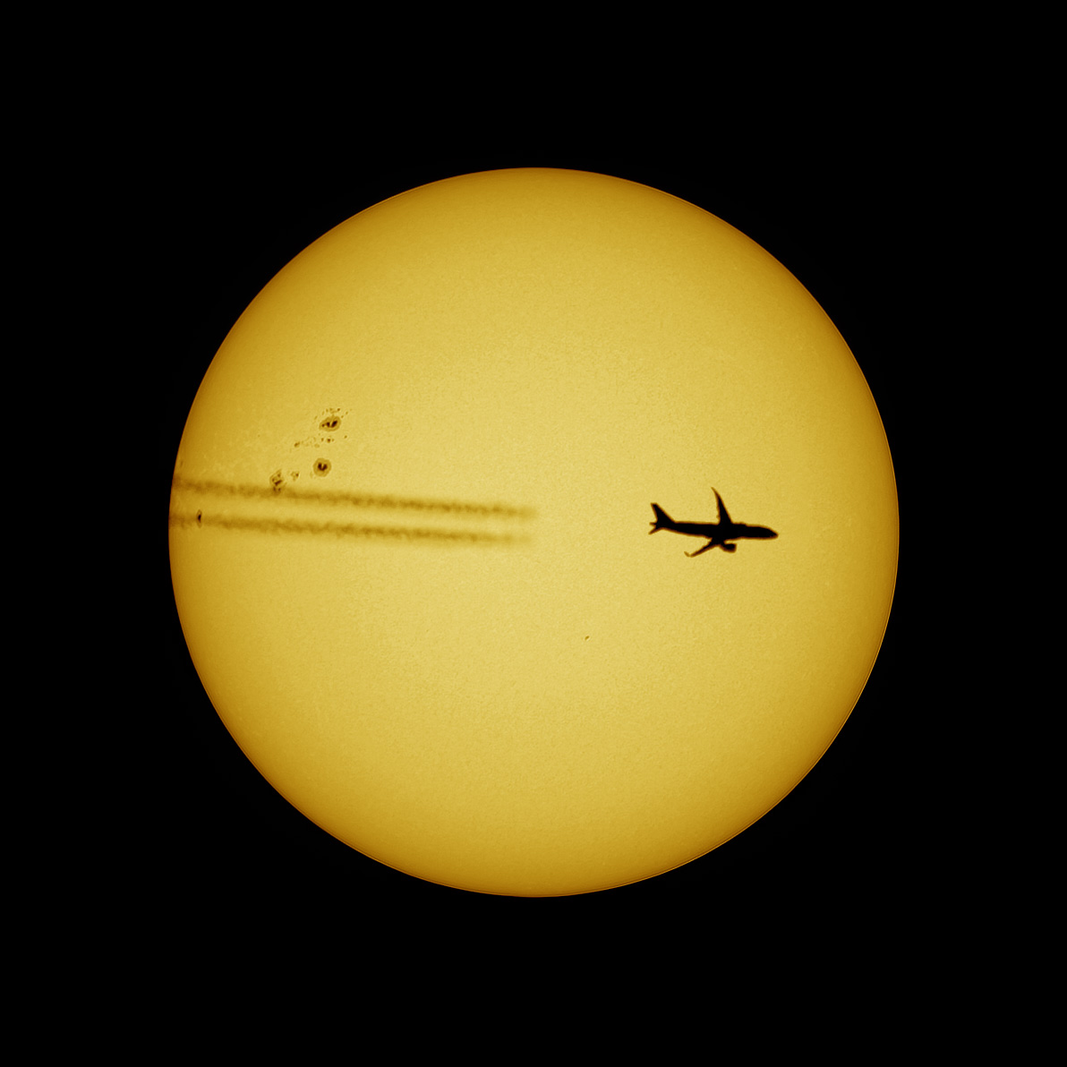 Leserbilder Astronomie: Sonne mit Flugzeug