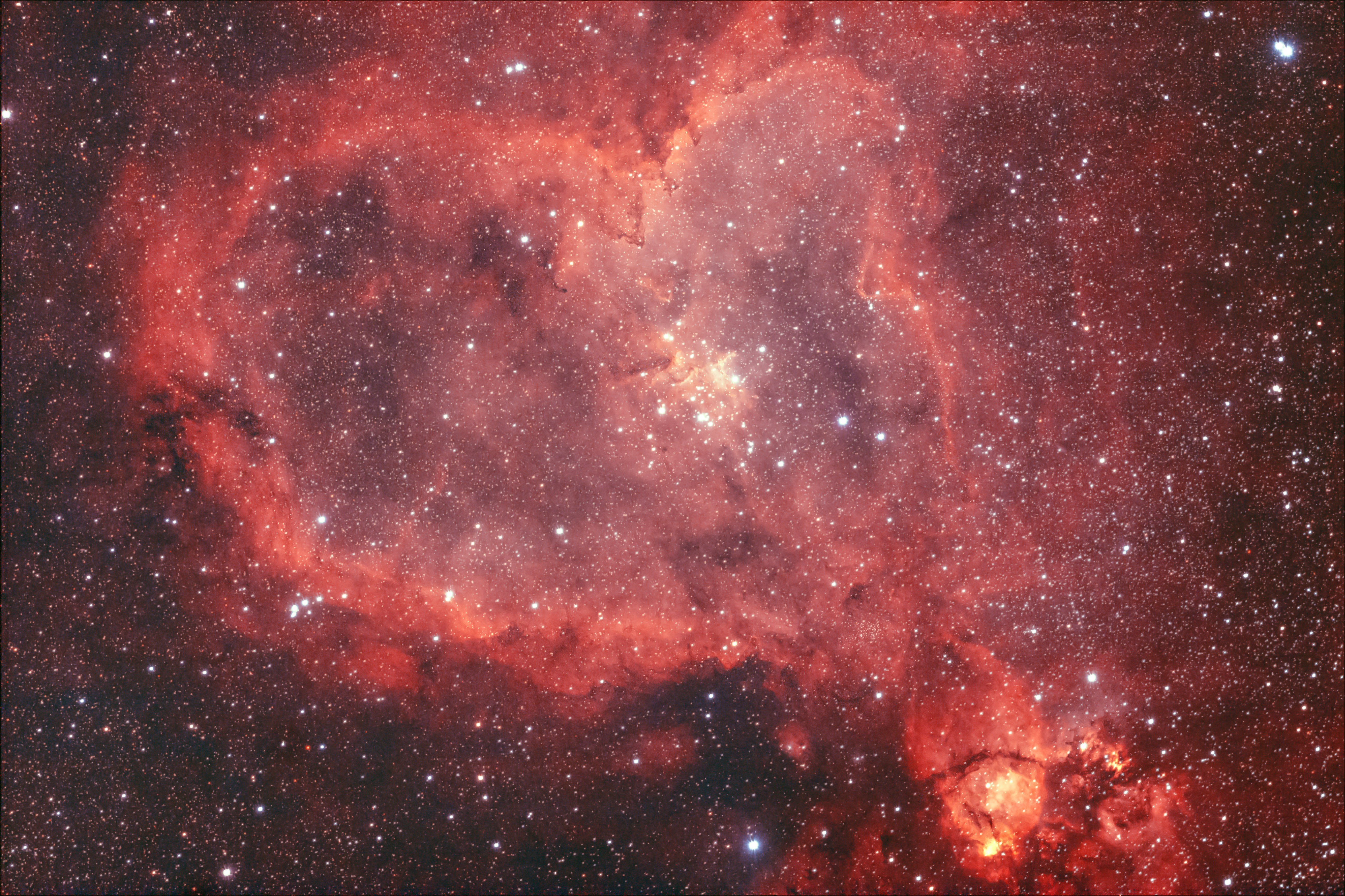 Da das Wetter an diesem Wochenende phänomenal war (kalt, klar, kein Mond), habe ich in zwei Nächten, zusammen zehn Stunden, mein Teleskop auf den Herznebel gerichtet.