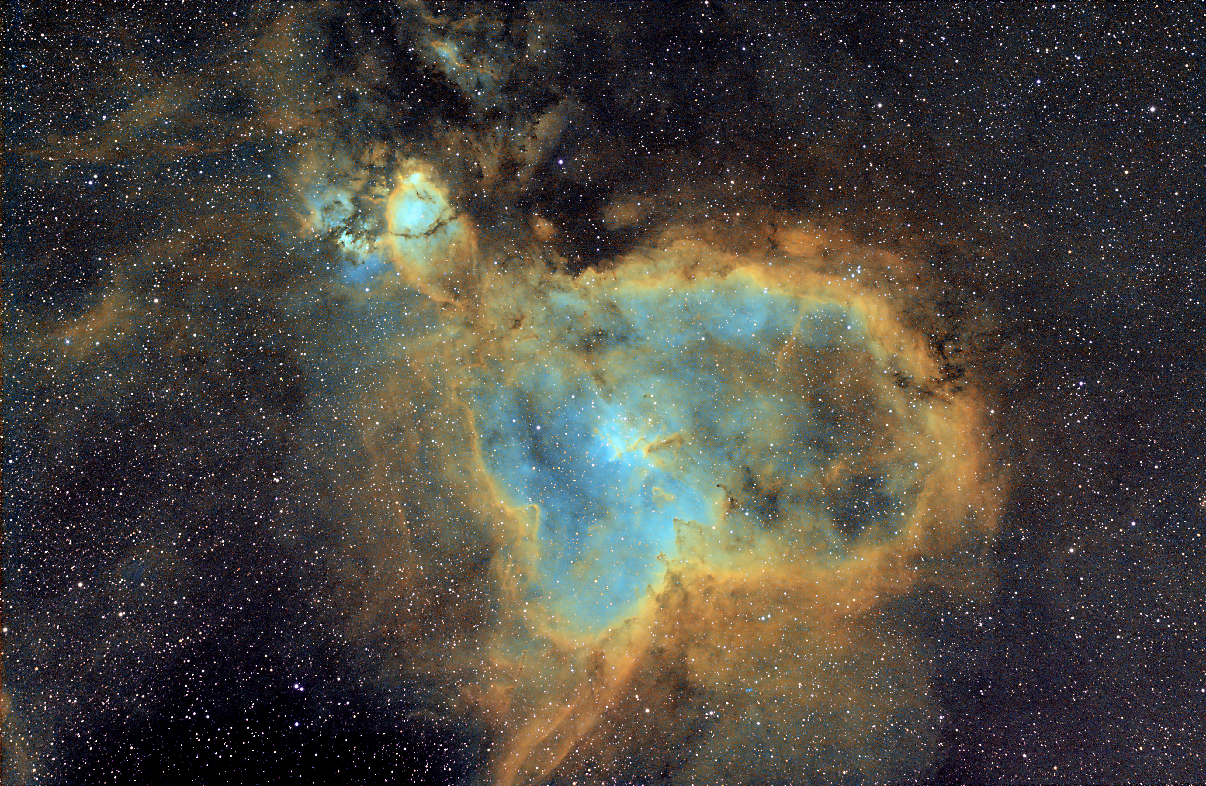 Summenbild aus 52 Einzelaufnahmen zu je 1800 Sekunden. Datenreduktion mit Flats und Darks. Die Aufnahmen wurden in 5 Nächten von August bis Oktober 2013 gewonnen.