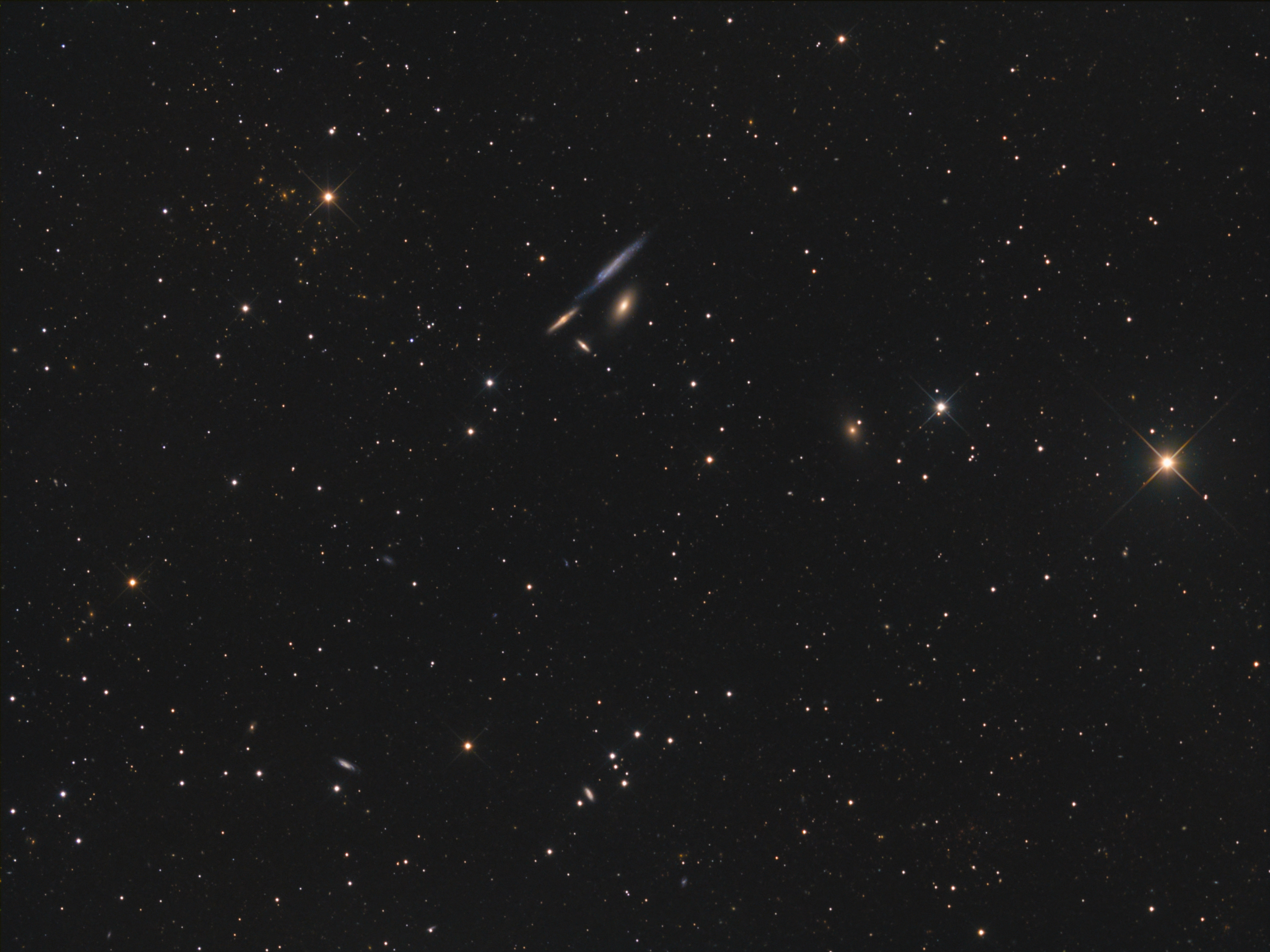 NGC 4173 ist etwa 50 Millionen Lichtjahre entfernt, die anderen drei dagegen rund 180 Millionen Lichtjahre.