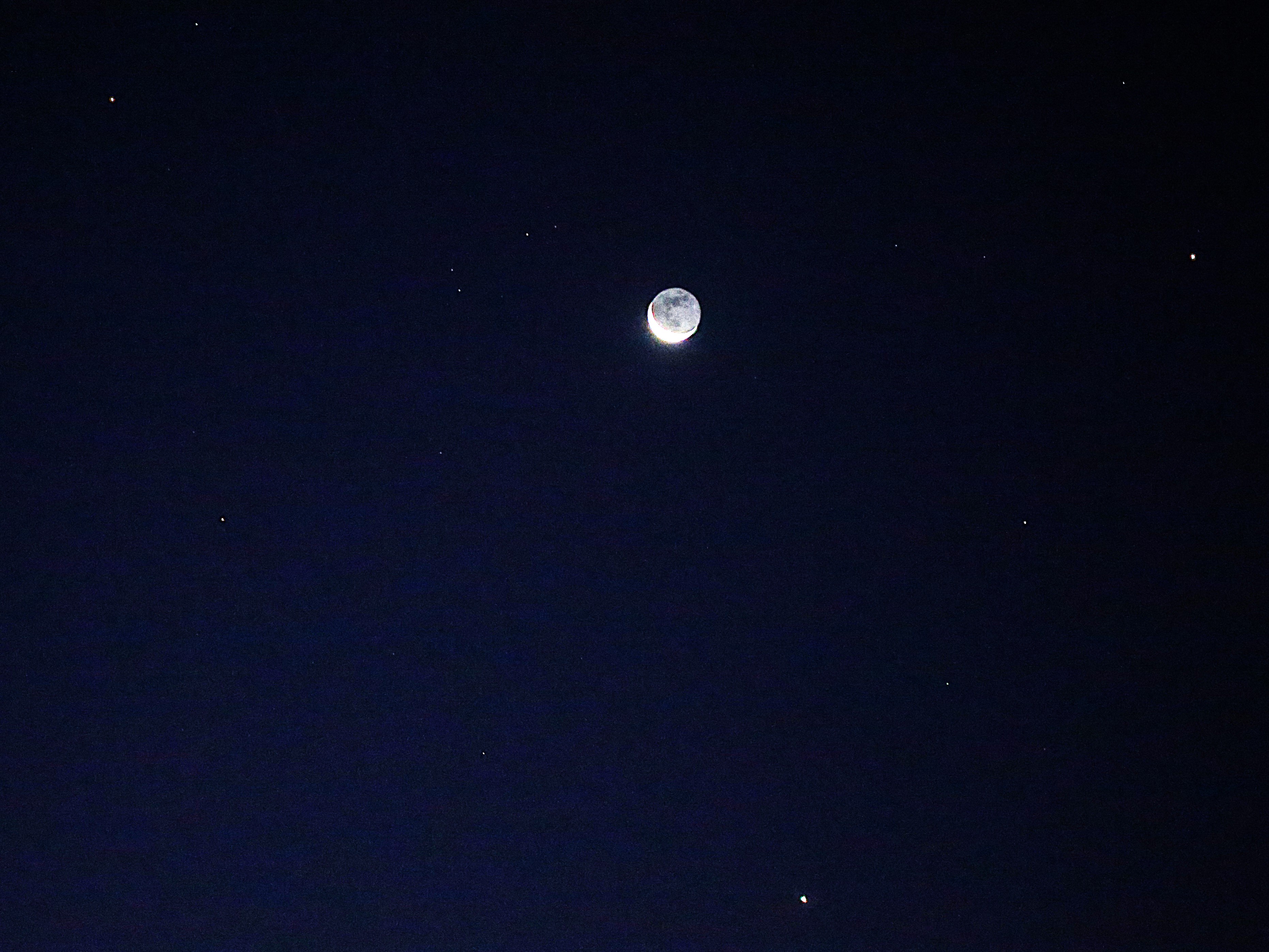 In den frühen Morgenstunden des 20. August 2025 hatte sich auch der Mond ins Sternbild Zwillinge begeben und bildete (im Uhrzeigersinn) mit Jupiter, Venus, Pollux und Castor ein himmlisches Quintett.