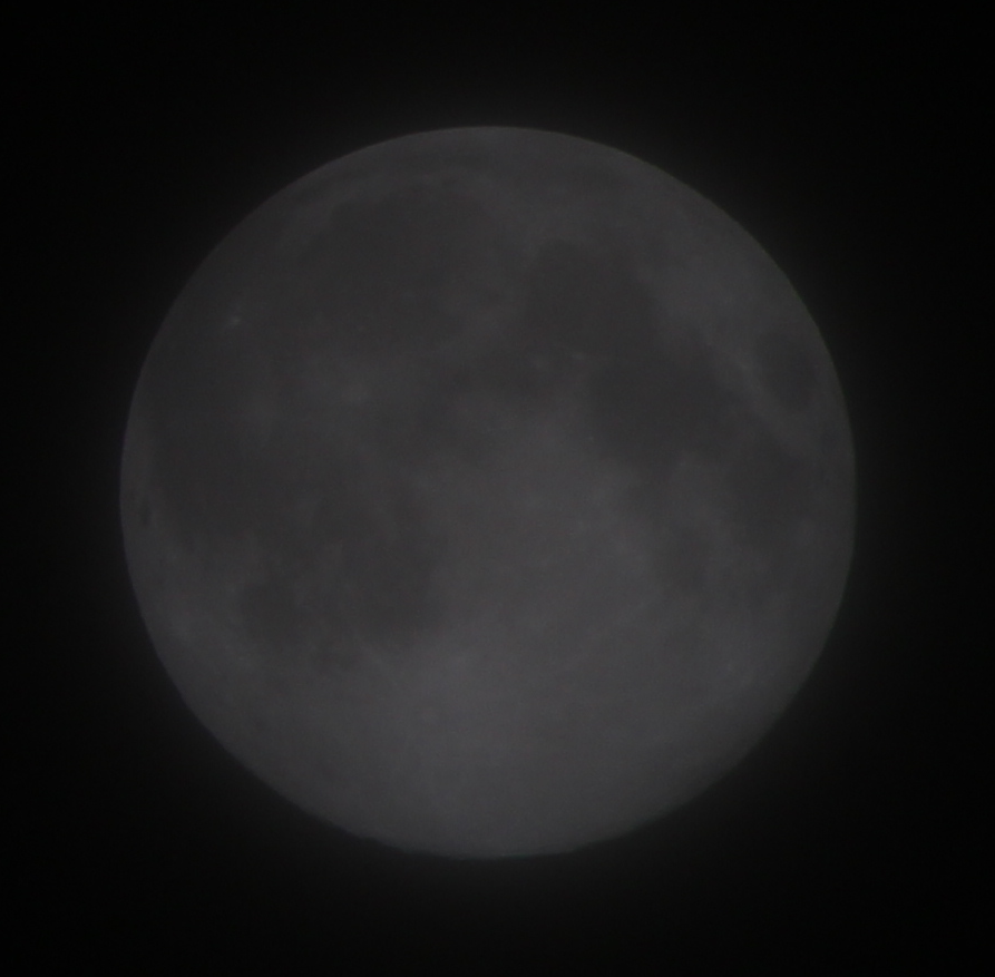 Der Vollmond mit der größten Höhe über dem Horizont, fotografiert bei starkem Dunst (nur der Mond war sichtbar) von Sindelfingen-Maichingen.