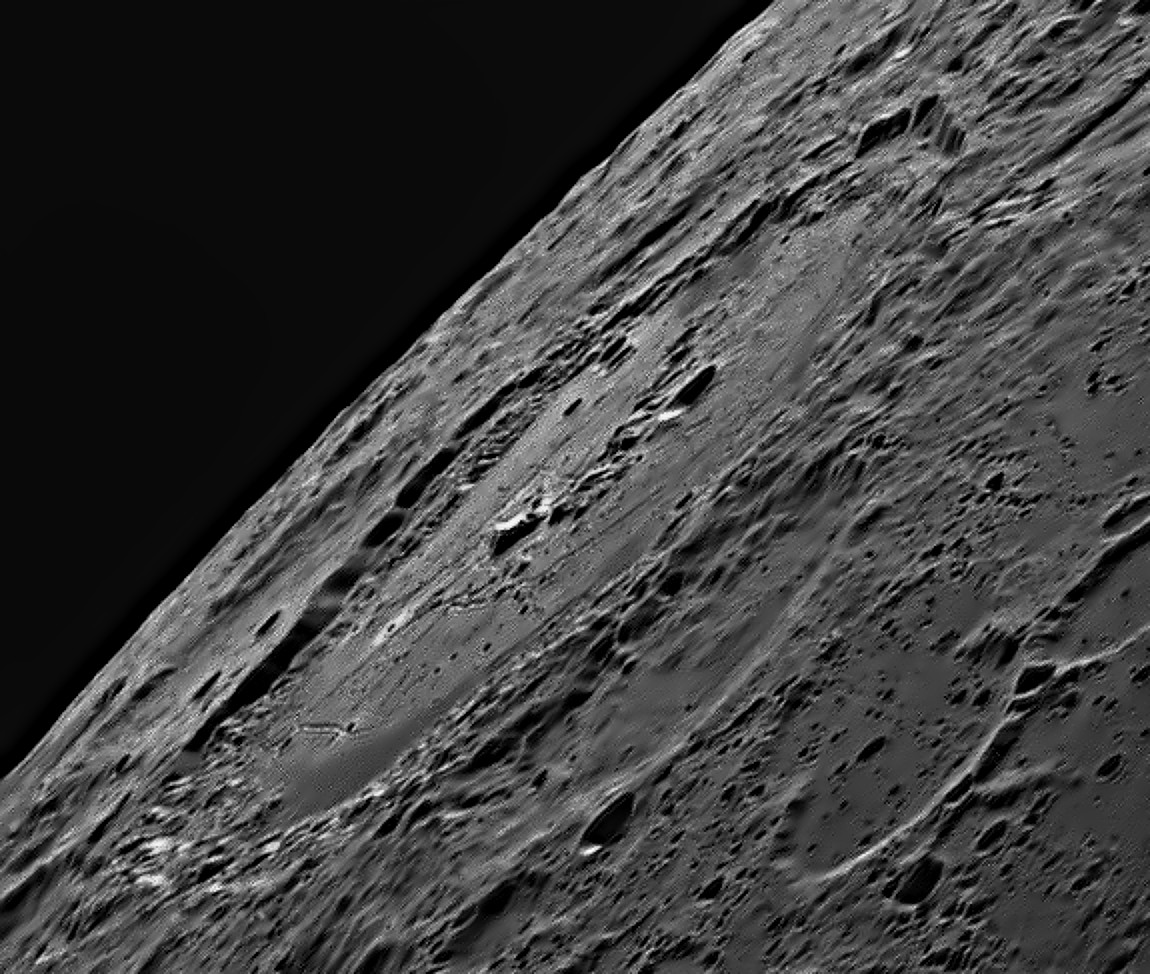 Humboldt, ein selten fotografierter Krater am Mondrand.