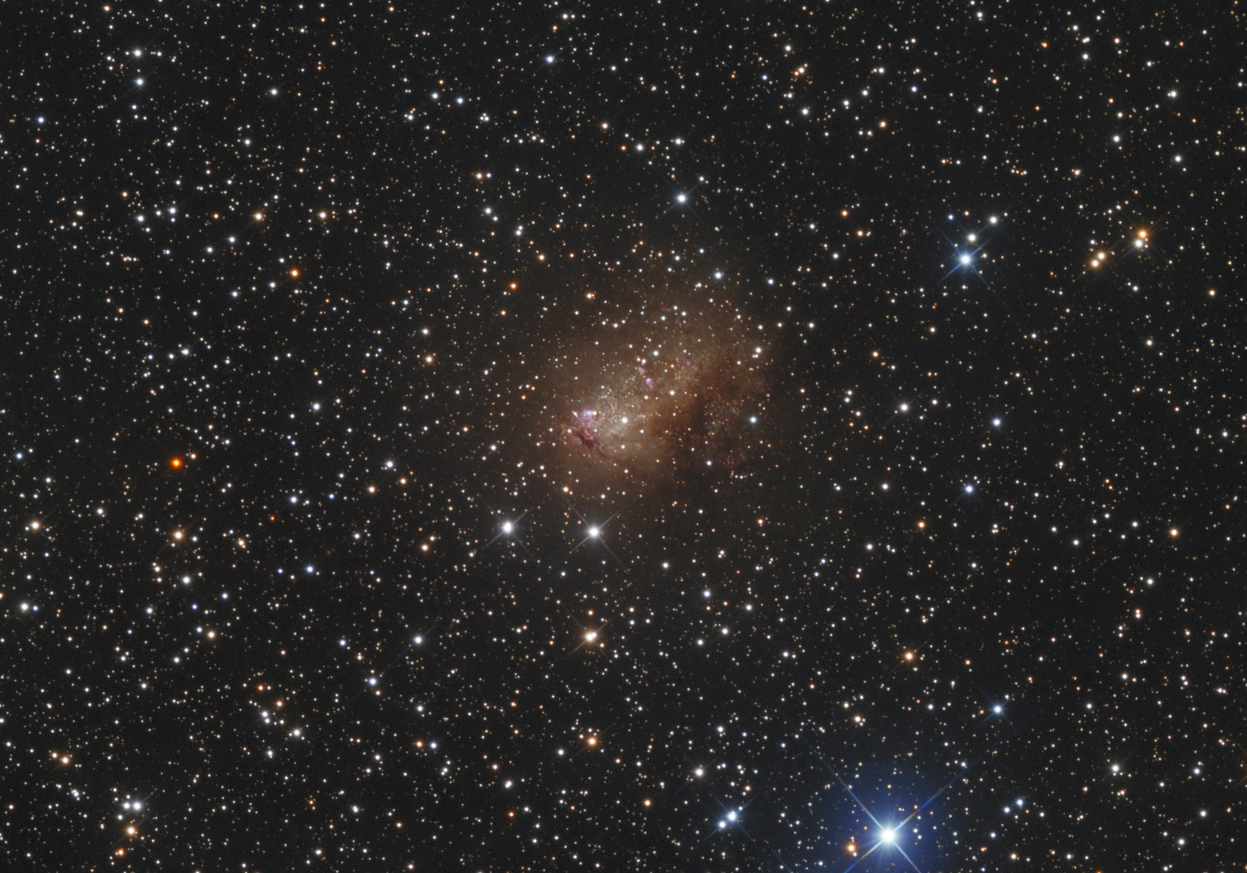 Nach längerer wetterbedingter Durststrecke konnte ich endlich wieder ein astronomisches Bild fertigstellen. IC 10 ist eine irreguläre Zwerggalaxie im Sternbild Kassiopeia. Die Galaxie ist Teil der Lokalen Gruppe, der auch die Milchstraße angehört. Das IC im Namen steht für den Index-Katalog, einen Ende des 19. / Anfang des 20. Jahrhunderts veröffentlichten astronomischen Katalog von galaktischen Nebeln, Sternhaufen und Galaxien. IC 10 ist eine sehr junge Galaxie mit aktiver Sternentstehung und die der Erde nächste Starburstgalaxie.