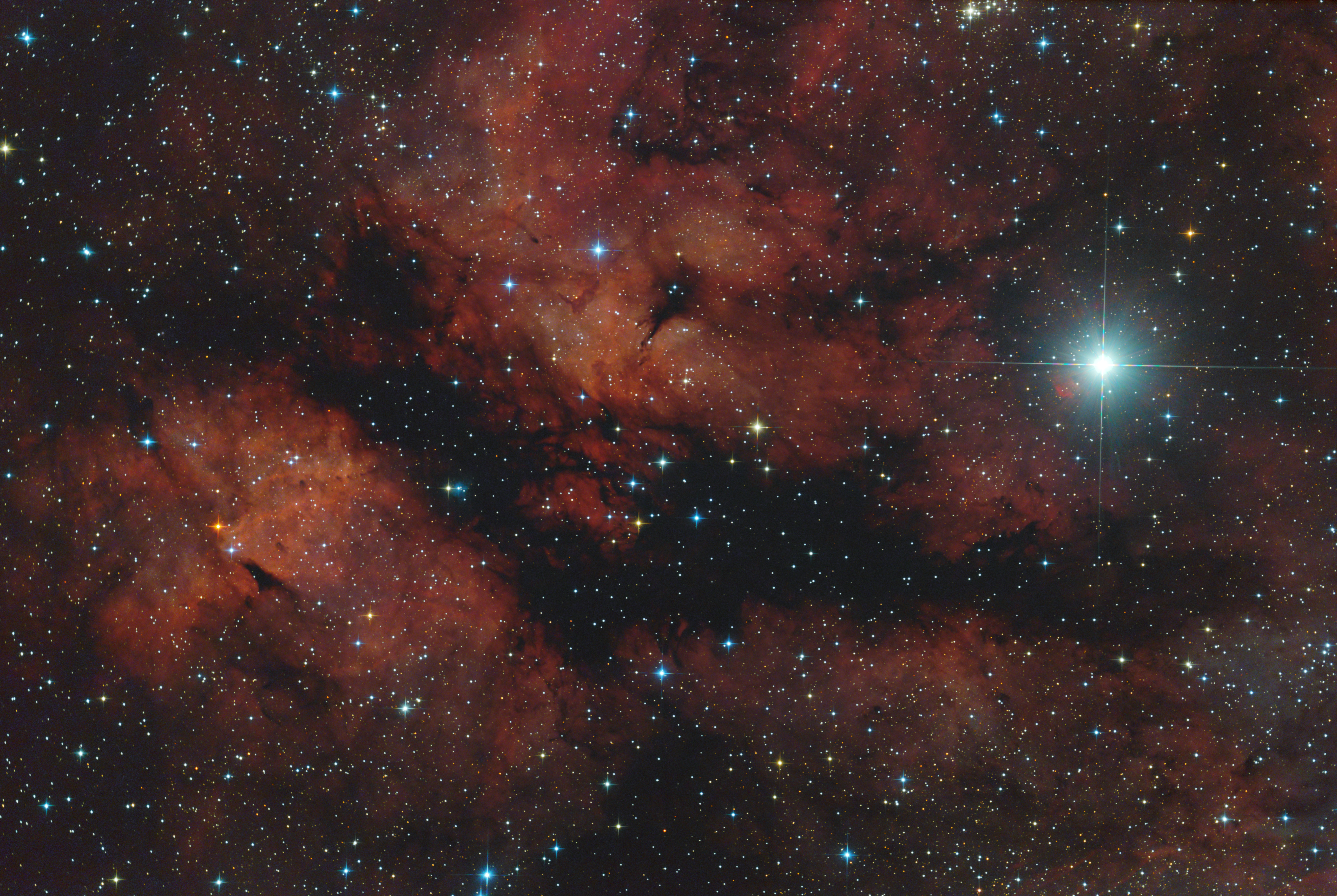 IC 1318, manchmal auch Schmetterlingsnebel genannt, ist ein Emissionsnebel und H-II-Region im Sternbild Schwan, rund 4900 Lichtjahre von uns entfernt. Im Zentrum des Nebels liegt der Stern Sadr oder Gamma-Cygni. Der aus 3 Teilen bestehende Nebel enthält die Dunkelwolke LDN 889. Das Bild ist eine Kombination aus reinem RGB und einer Schmalbandaufnahme mit dem Optolong L-eXtreme Filter