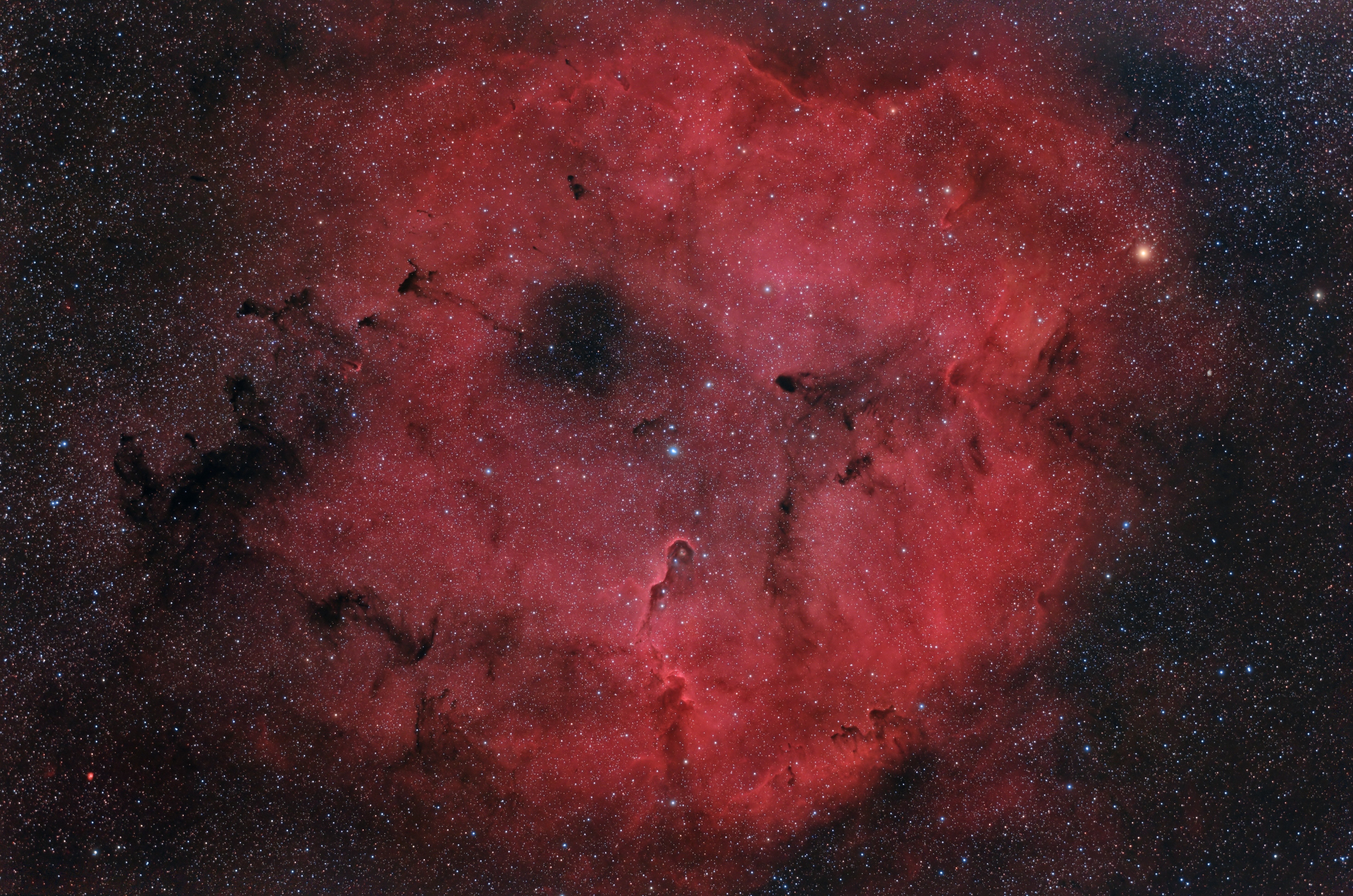 Im Sommer optimal, eigentlich aber das ganze Jahr über sichtbar, besteht IC 1396 aus einem Sternhaufen und einem eingebetteten Emissionsnebel. Sehr bekannt ist der Elefantenrüssel innerhalb des Nebels und weitere Dunkelnebel zieren das Objekt. Für meine Aufnahme nutzte ich einen Refraktor mit 352 mm Brennweite und teilweise Schmalbandfilter, um die Nebelregionen besser heraus zu holen. Ungefilterte Aufnahmen dienen dann zur Sternfarbenrekonstruktion.