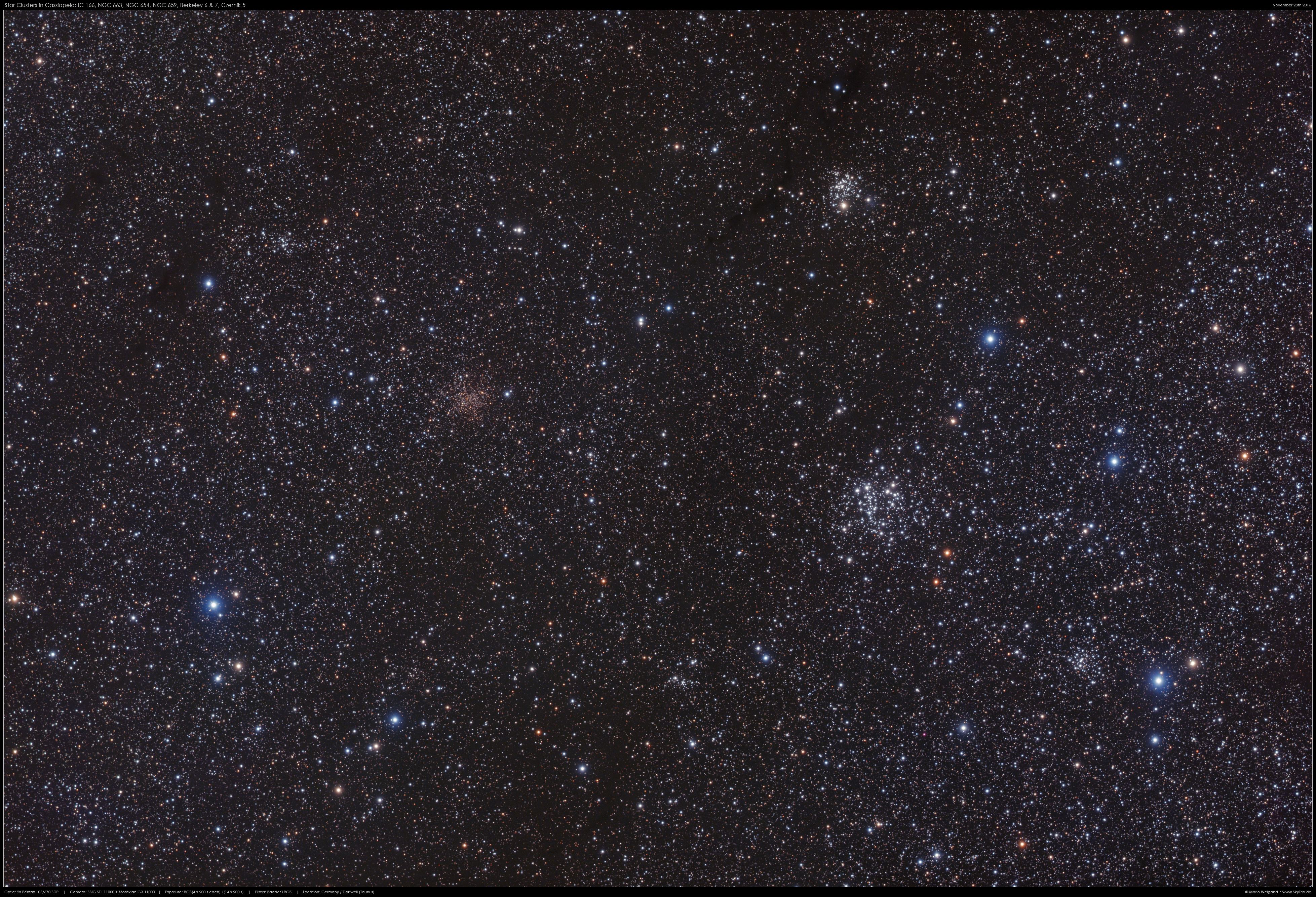 | Objekt | IC 166, NGC 663, NGC 654, NGC 659, Berkeley 6, Berkeley 7, Czernik 5 |